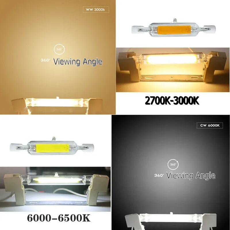 Светодиодная лампа R7S, 78 мм, 118 мм, точесветильник светильник высокой мощности, 220 В переменного тока, в, стеклянная COB-трубка, светодиодсветодиодный лампа G9, сменная галогеновая лампа
