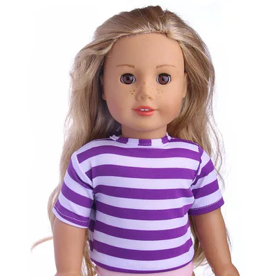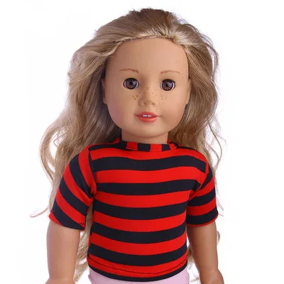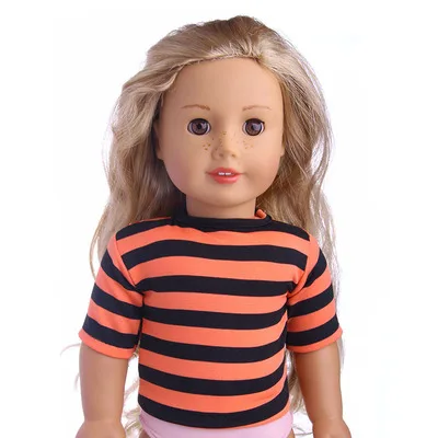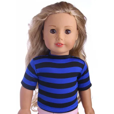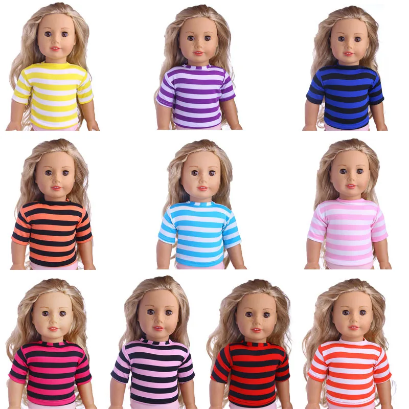 Модная футболка в полоску с новым узором подходит для 18-дюймовых американских кукол и 43 см Одежда для новорожденных аксессуары Игрушка для девочек