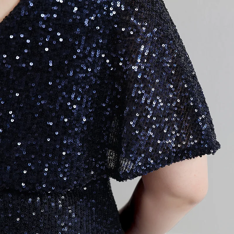 Золотое Платье трапециевидного силуэта De Soiree DR1040 блестящее вечернее платье с блестками женские вечерние платья с v-образным вырезом и рукавом до локтя Элегантные платья размера плюс