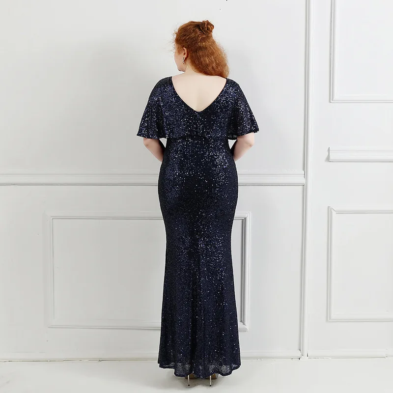 Вечернее платье с блестками, элегантный v-образный вырез, короткие рукава, молния сзади, складки, длина до пола, новинка, Русалка размера плюс, Женские официальные платья D1276 Таблица размеров