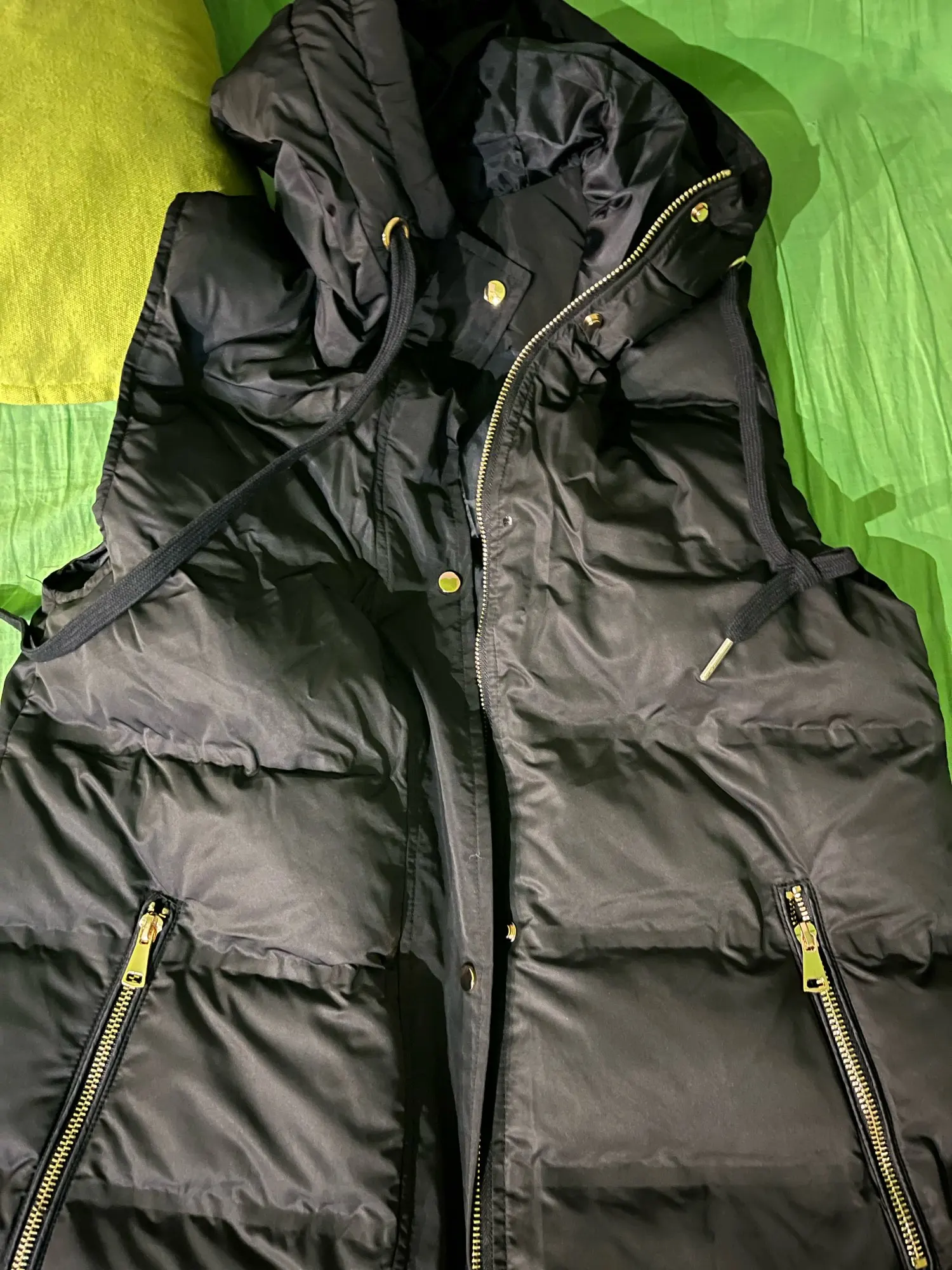 Жилет Я заказала расцветку black в размере М. На параметры: Рост 175см Объём груди 86см Объём талии 65см Объём бёдер 94см Жилет сел хорошо. Есть запас по объёму и в пройме, что даёт возможность носить жилет с объемными свитерами и худи. Жилет не очень плотный. Застёгивается на металлическую молнию и кнопки. По бокам есть кармашки тоже на молнии. Капюшон среднего размера, затягивается с помощью шнурочка. Есть бирка с составом и рекомендациями по уходу. Указанный состав: 100% полиэстер. Постороннего запаха при распаковке не было.