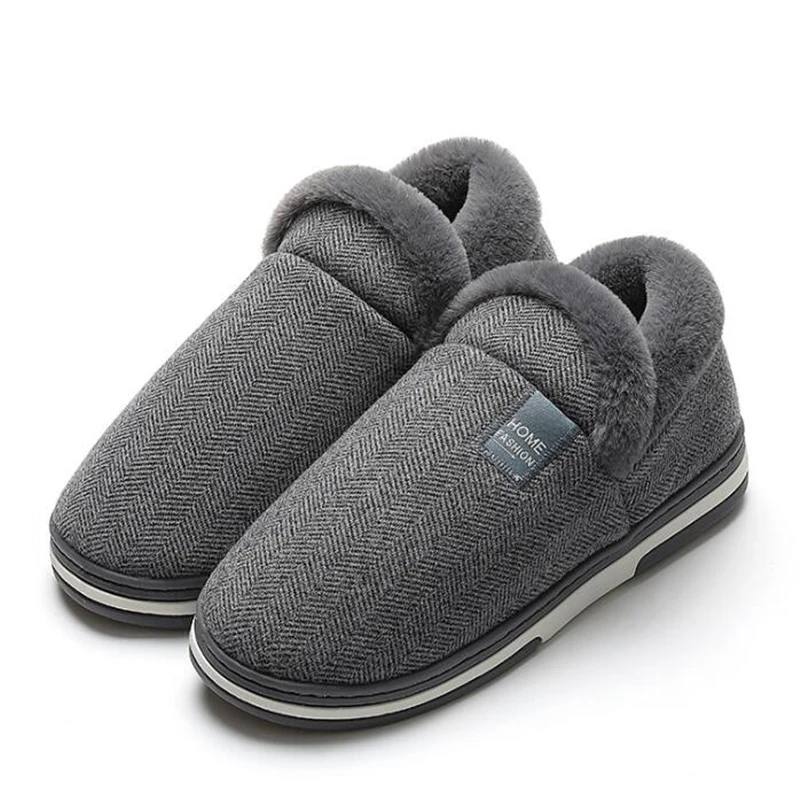 Новые зимние тапочки, Теплая мужская обувь, Нескользящие плюшевые хлопковые комнатные туфли, уличная Уютная домашняя обувь на плоской подошве
