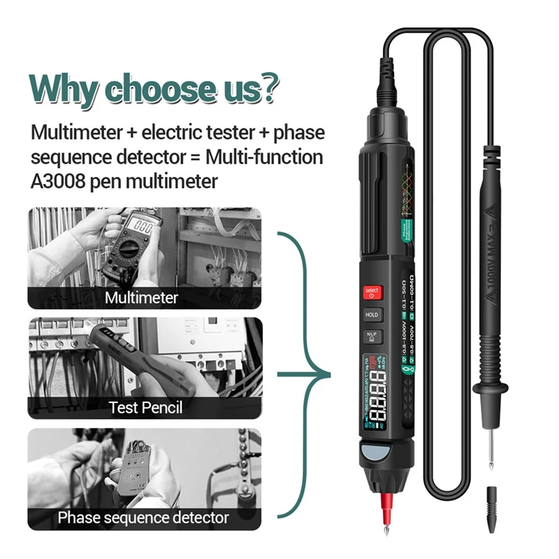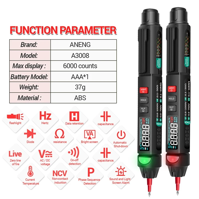 Цифровой Интеллектуальный профессиональный мультиметр ANENG A3008, 6000 отсчетов, тестер сенсорная ручка, измеритель тока, Бесконтактный вольтметр