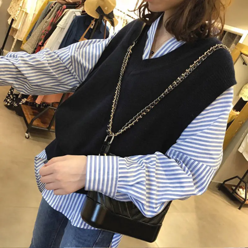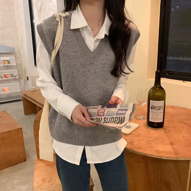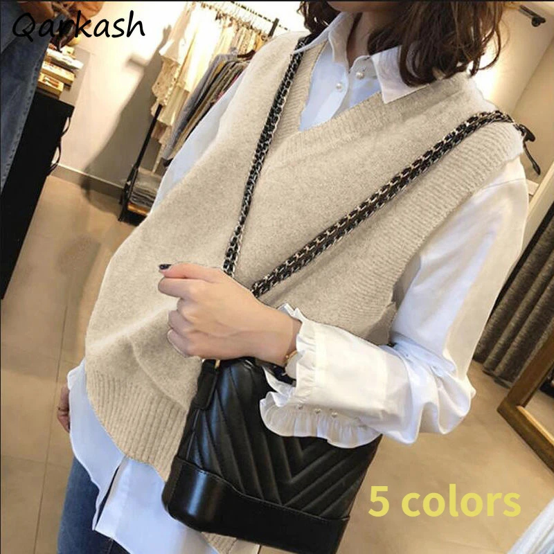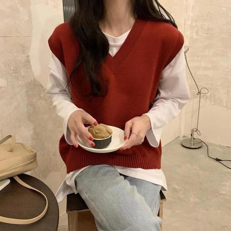 Свитер-жилет женский весенний однотонный базовый минималистичный с разрезом в японском стиле классический универсальный свободный уютный Лидер продаж для студенток женский новый