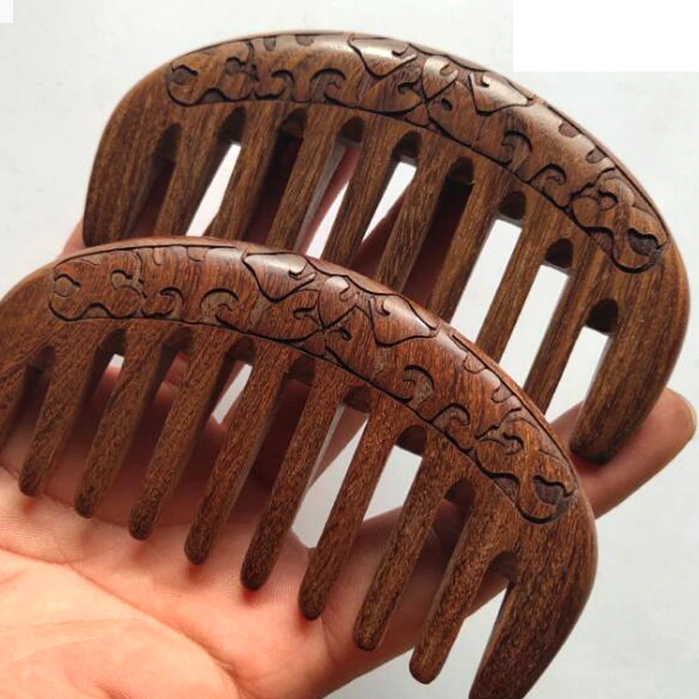 Карманная деревянная расческа из натурального черного и золотого сандалового дерева, супер широкая зубная деревянная расческа, не статическая гребень для бороды, прическа для волос