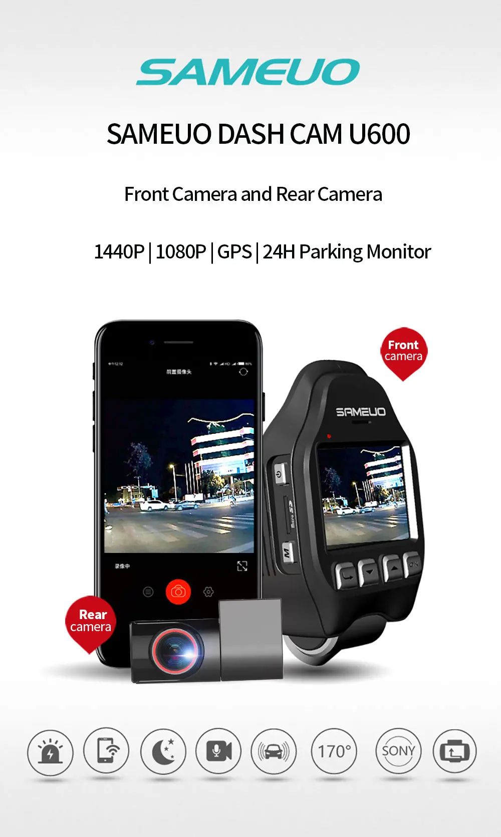 Sameuo U600 видеорегистратор 2K GPS dvr WIFI dashcam Автомобильный видеорегистратор Автомобильная камера рекордер 1440P Автомобильная камера 24H монитор парковки