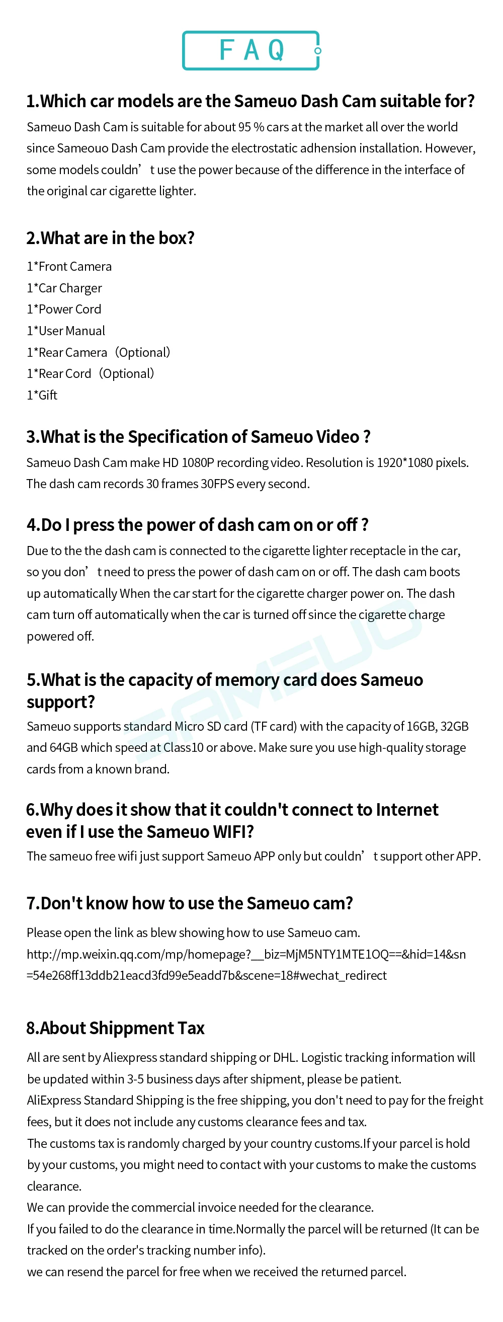 Особенности:* Функция: двухъядерный процессор NOVATEK* Экран: 2,0 дюйма IPS* Язык: английский, тайский, русский, португальский, японский, украинский.* Видео Piels: 2560*1440 30 кадров в секунду/1920X1080 30 кадров в секунду* Видео пиксель: 500 Вт 200 Вт* Пиксель изображения: 1200 Вт* Угол объектива 1440p & 1080p(170 °)720p(140 °)* Видеоформат H.264* ПЗУ 2 Гб* Чип изображения: SONY Starvis Exmor CMOS* Объектив 6G LINS F1.6* Хранение TF (максимум 64 Гб). Используйте sd-карту Sameuo.* PARKMONITOR: 24 часа в сутки упаковочные монитор (требуется SAMEUO проводной кабель (не указана)