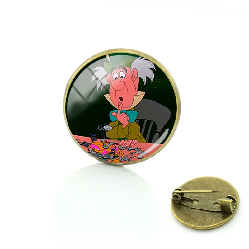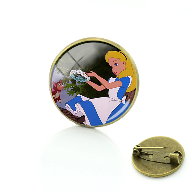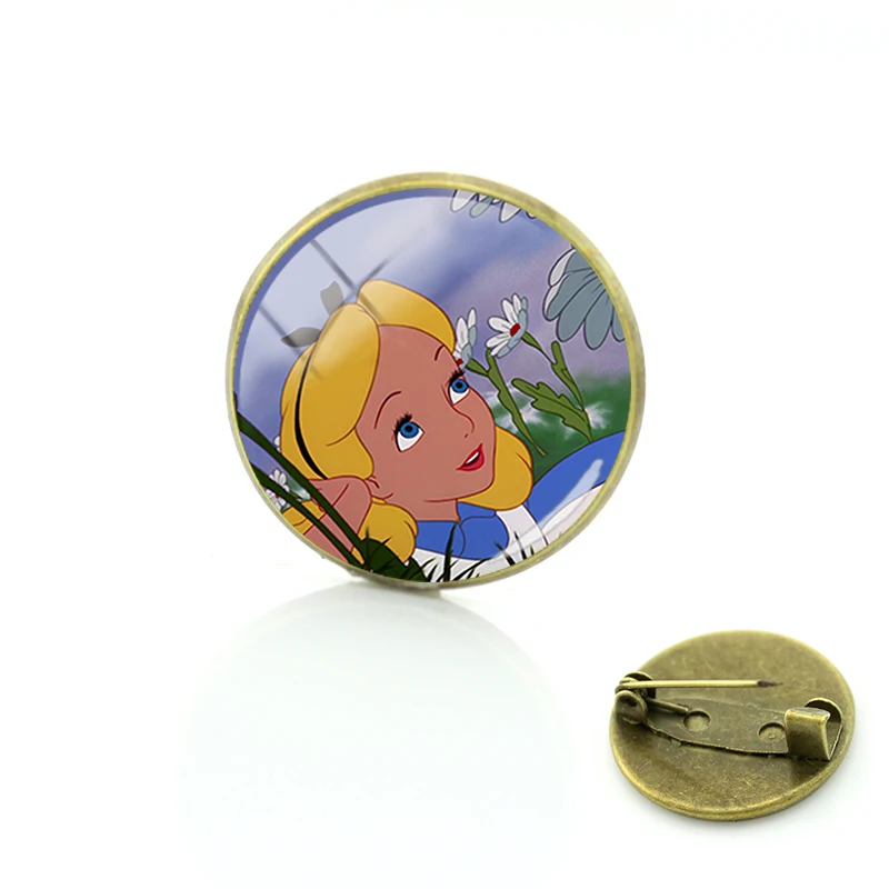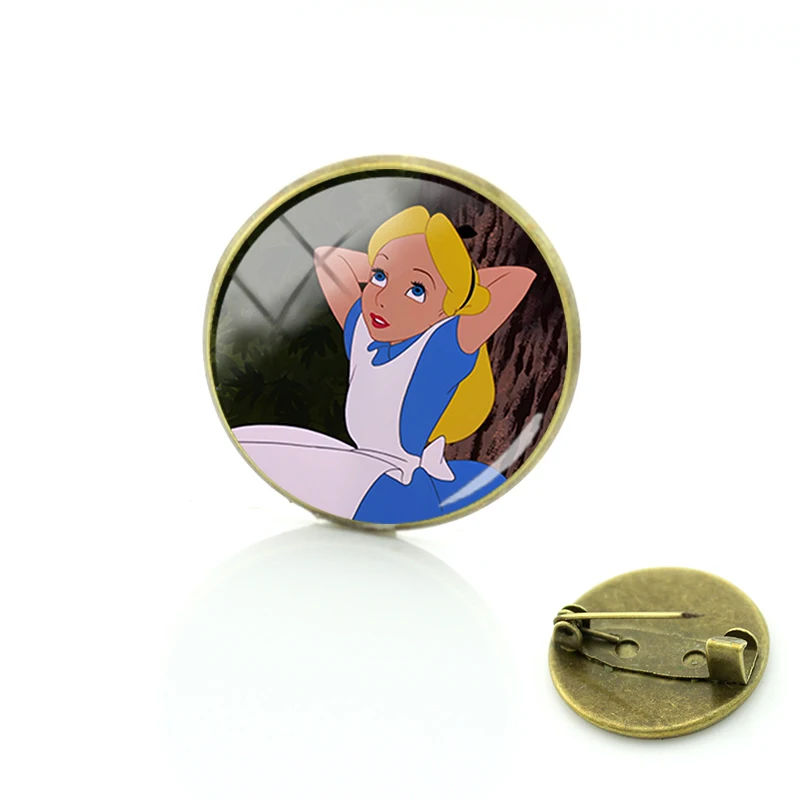 Дисней Алиса в Стране Чудес шаблон Брошь булавка Круглые Стеклянные мужские и женские Модные Винтажные Ювелирные изделия из бутикаИзображения продуктов: