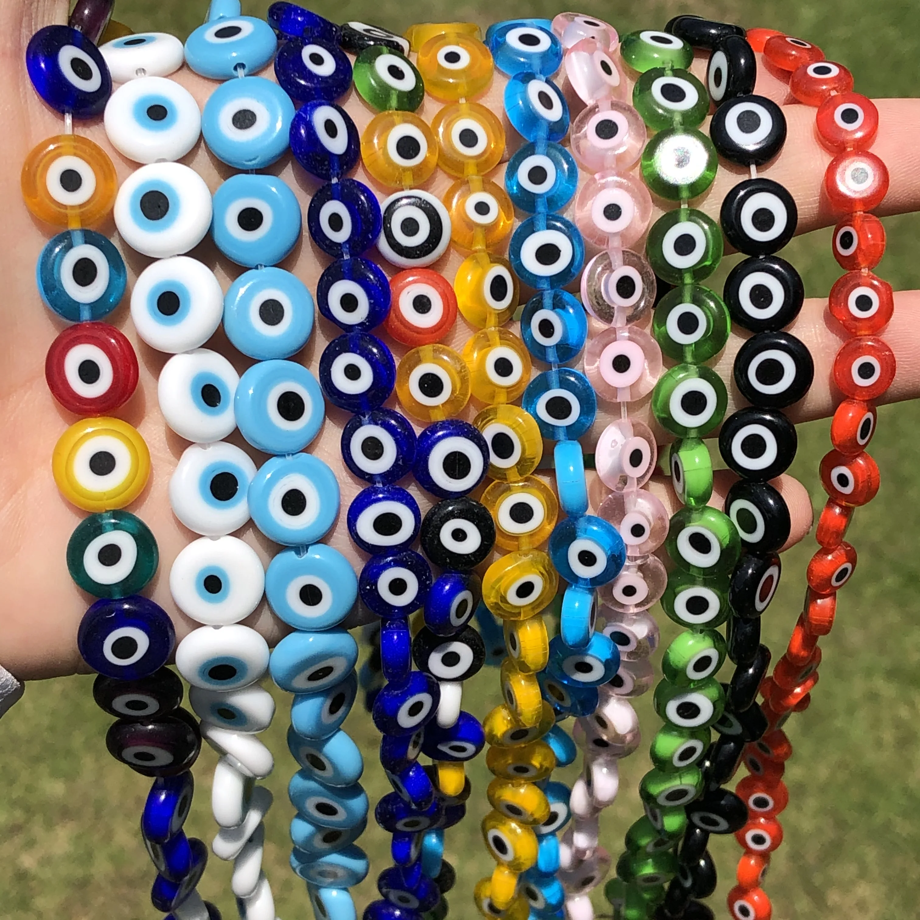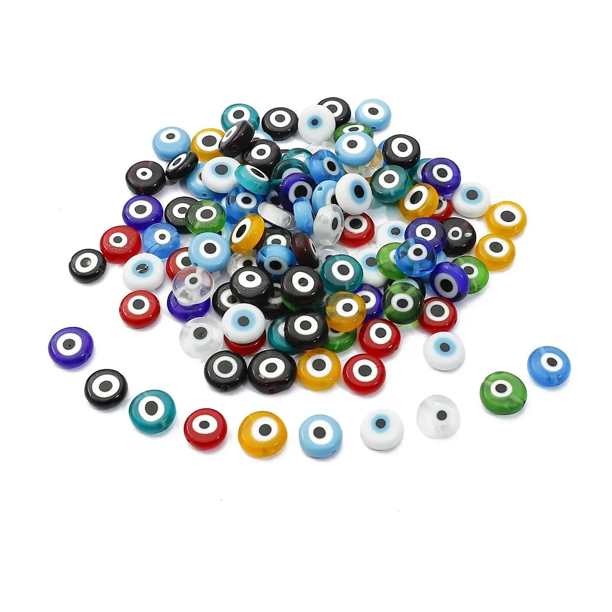 Бусины круглые плоские, 6810 мм, цветные, глаз сглаза, лэмпворк, гл...