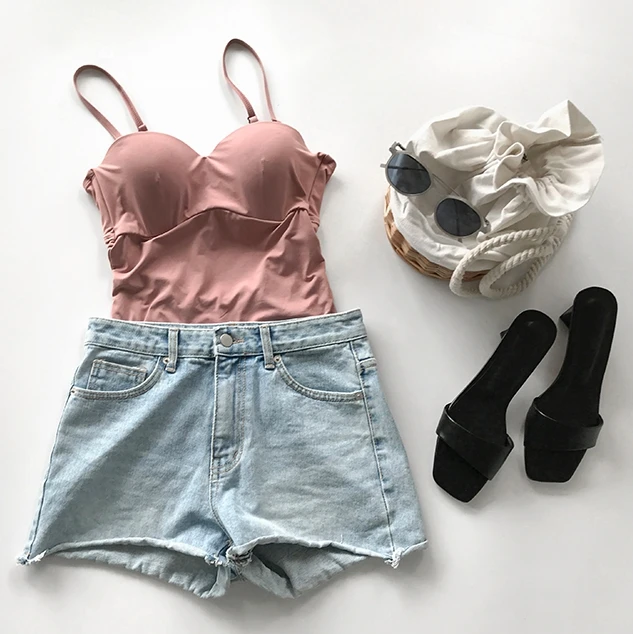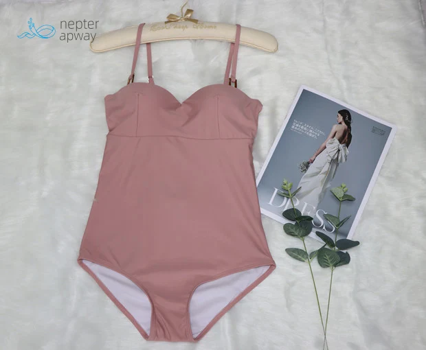 Сексуальный цельный купальник бандо женский однотонный купальник мо...