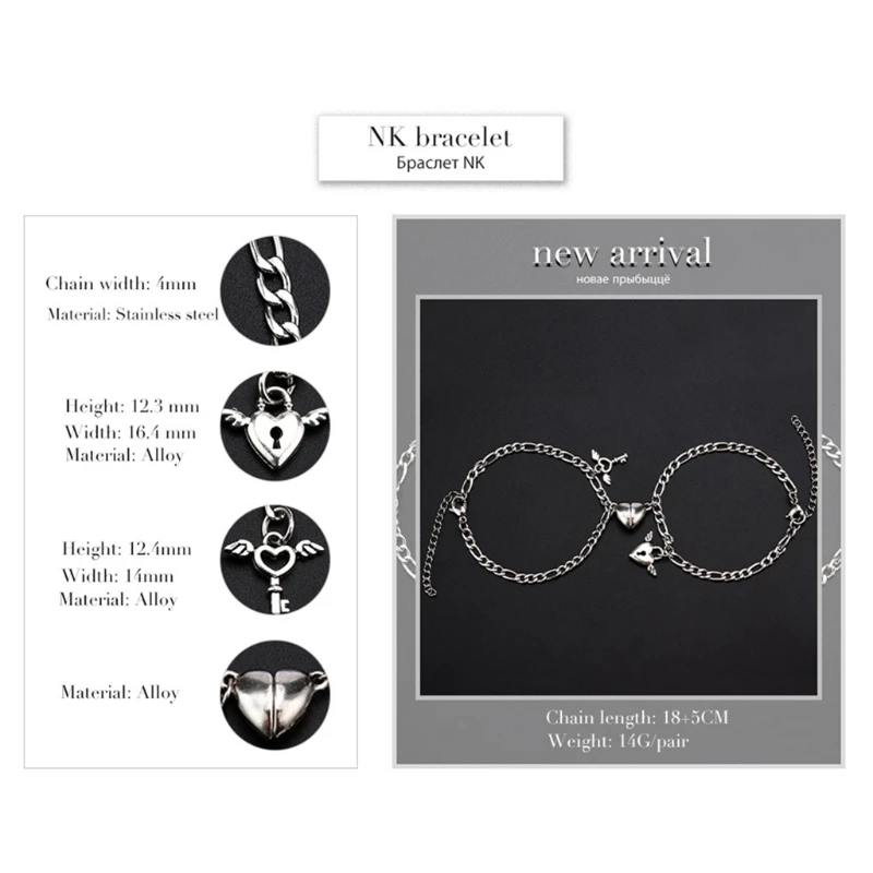 Браслет Магнитный в форме сердца для пар, ювелирное изделие из нерж...