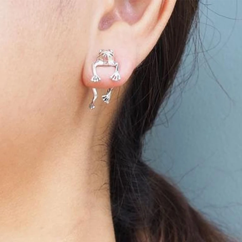 Милые Серебристые серьги-гвоздики из сплава с лягушкой, готические персональные серьги-гвоздики унисекс с животными, украшение в подарок