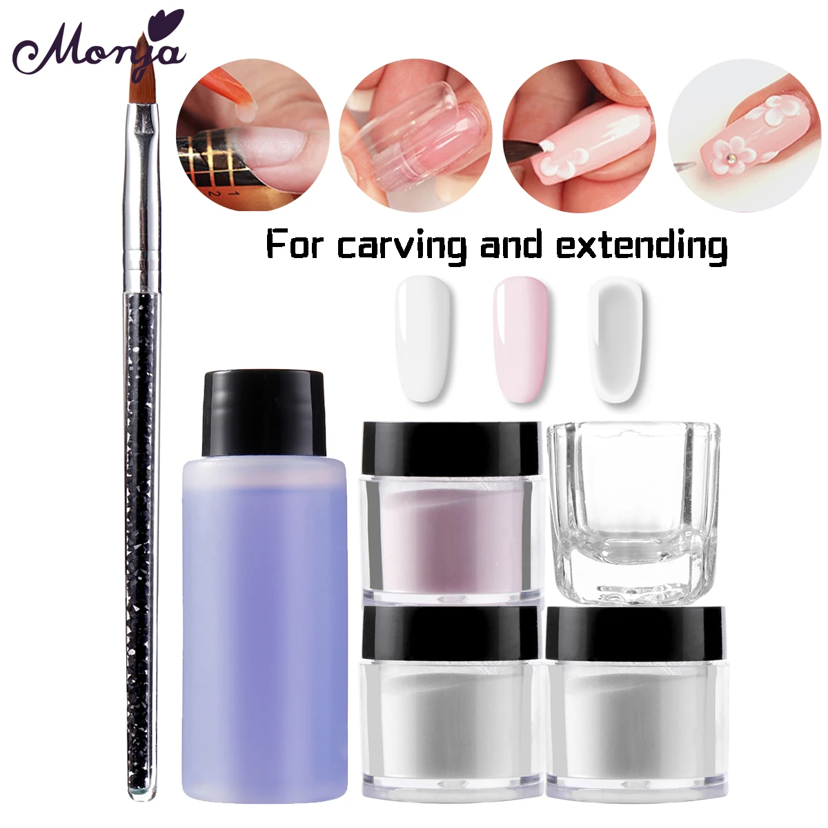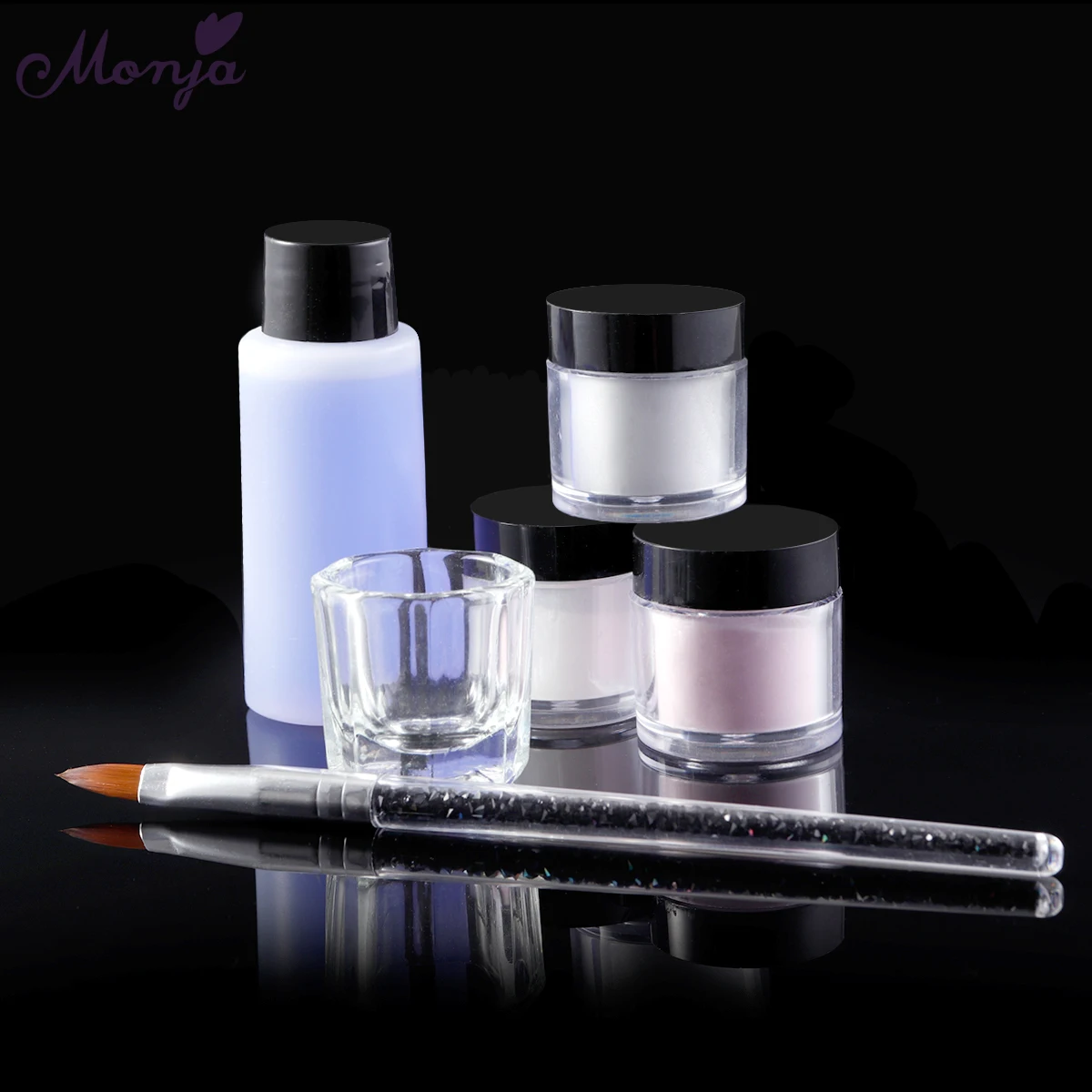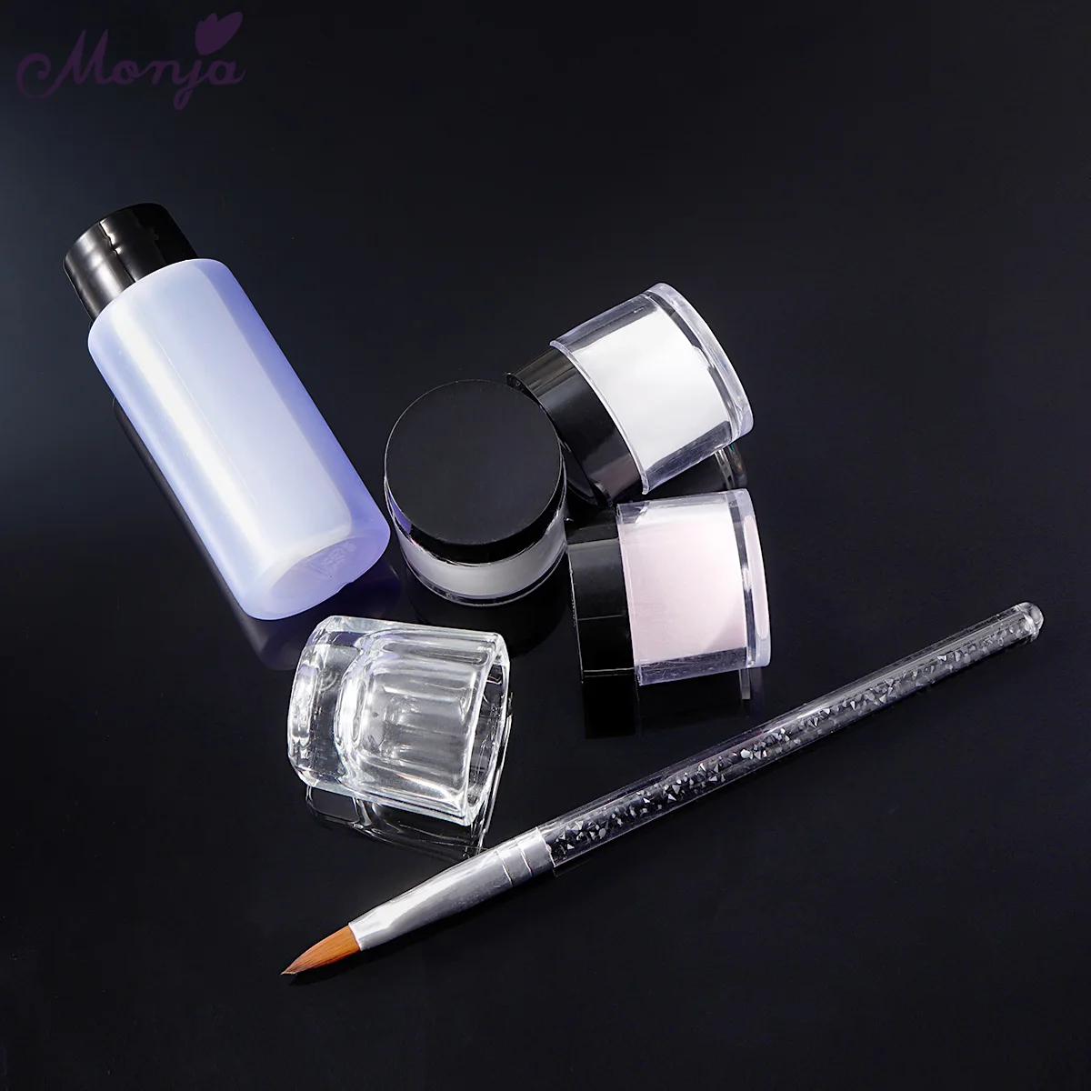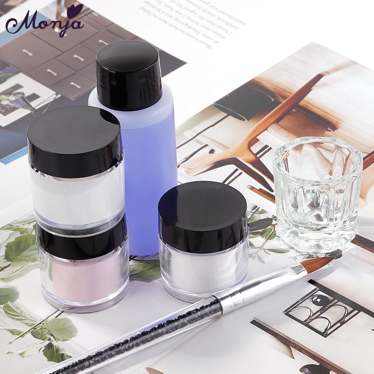 Набор для дизайна ногтей Monja, прозрачная чашка, розовая, белая акриловая пудра, жидкость для наращивания ногтей, инструменты для самостоятельного маникюра, 6 шт.партия