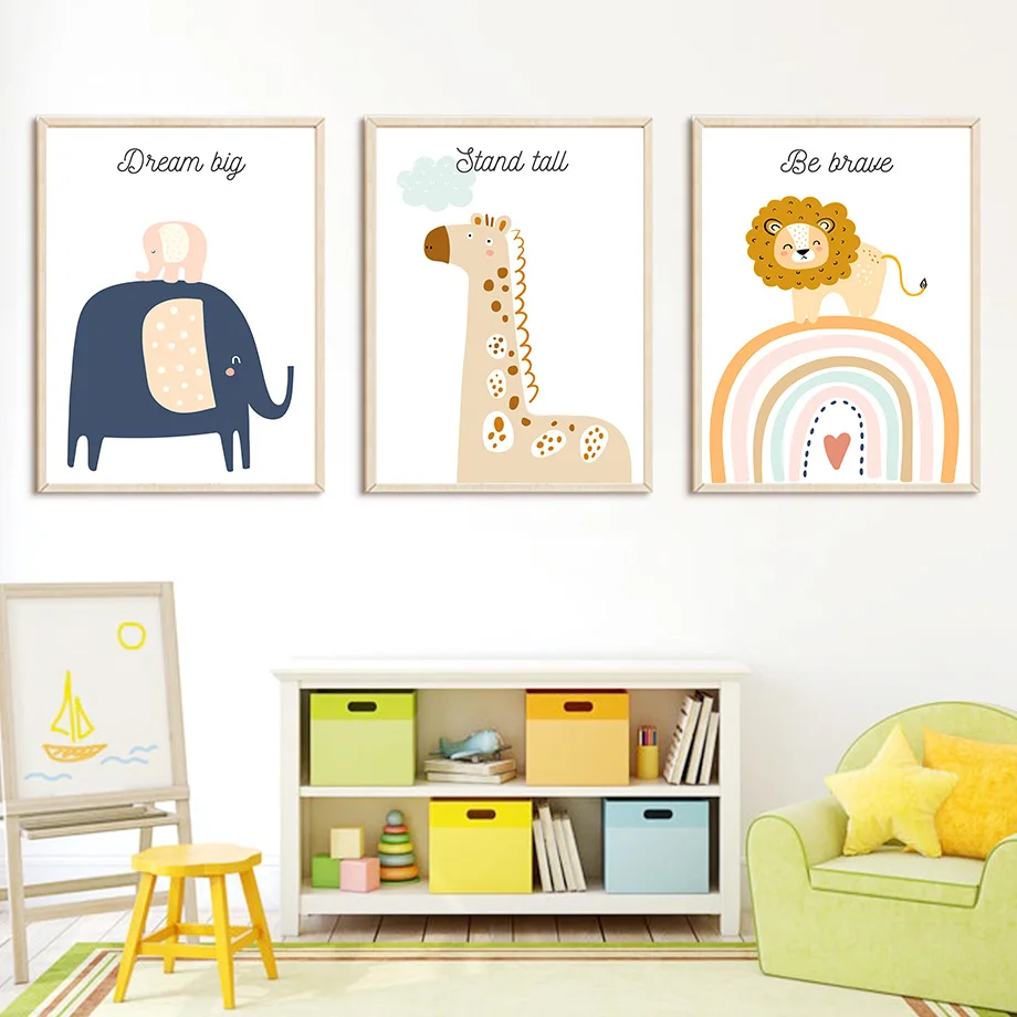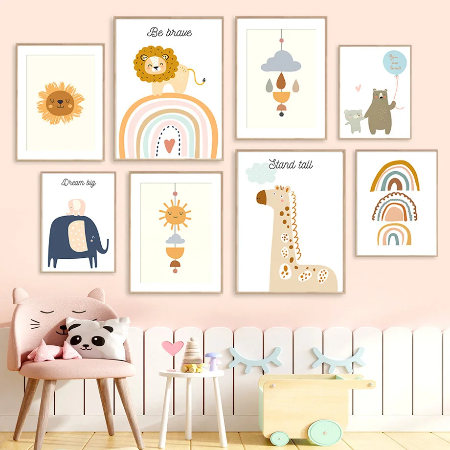 Жираф Лев Радужный цветок скандинавский мультфильм плакаты и принты художественная живопись на холсте настенные картины для детской комнаты декор для детской комнатыМатериал: экологически чистый хлопокХарактеристика: солнцезащитный, водонепроницаемый, никогда не выцветает