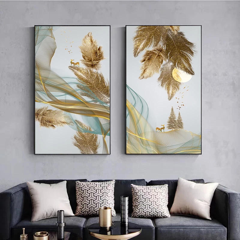 Постер, печать, перьевая лента с оленем, Картина на холсте, современный пейзаж, картина для гостиной, коридора, настенное искусство, украшение для дома