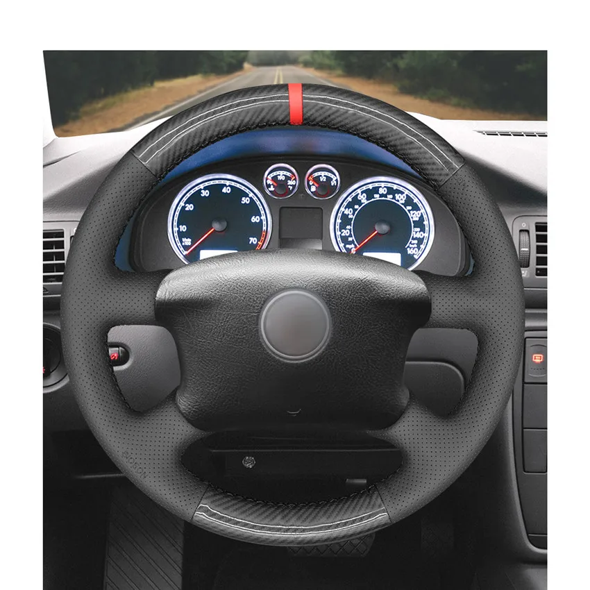 Оплетка из черного полиуретана, углеродное волокно Чехлы рулевого колеса автомобиля для Volkswagen VW Golf 4 IV Passat B5, вариант Bora T4 T5 Seat Alhambra