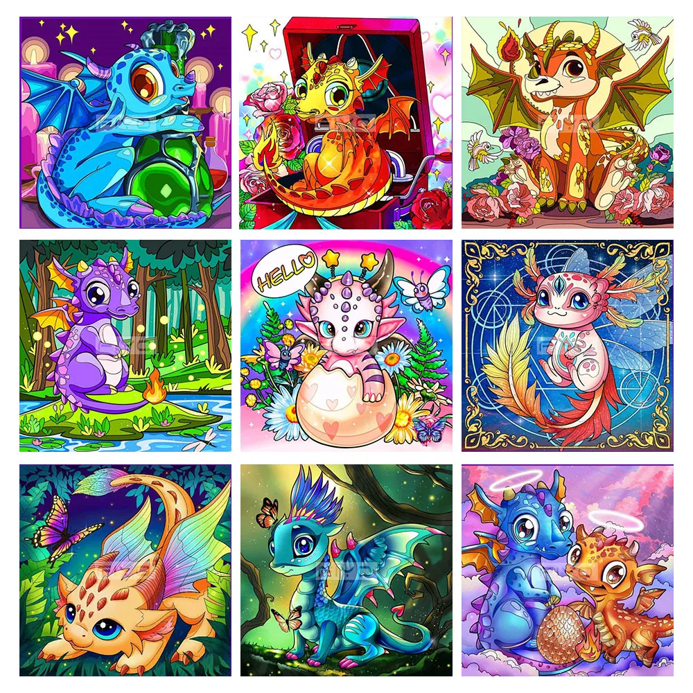 Алмазная живопись с аниме мультяшными животными драконом 5D Набор д...