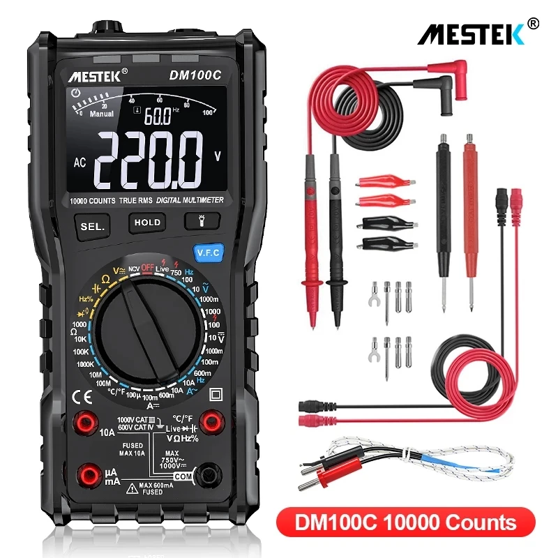 Цифровой мультиметр, истинное среднеквадратичное значение, 10000 отсчетов с аналоговой гистограммой, амперметр напряжения переменногопостоянного тока, ток, Ом, ручнойавтоматический