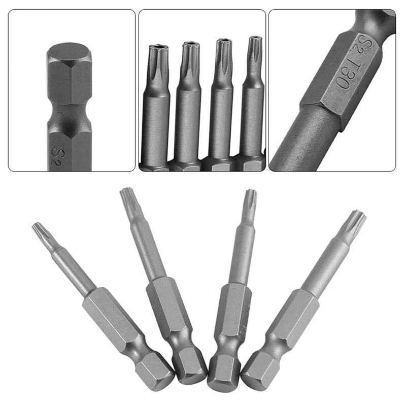 Набор отверток Torx с шестигранным хвостовиком, 8 шт., 1/4 дюйма, Набор насадок для отвертки с защитной головкой, магнитная звезда S2, Набор насадок из легированной стали