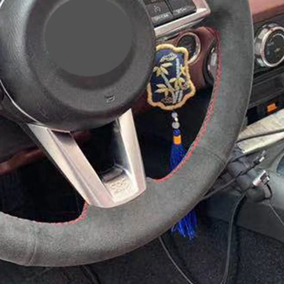 DIY ручной работы черная замша красный маркер чехол рулевого колеса...