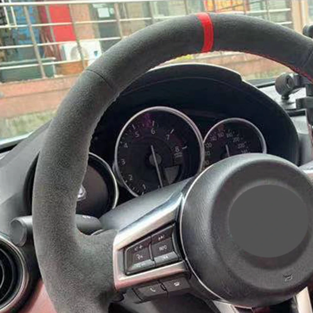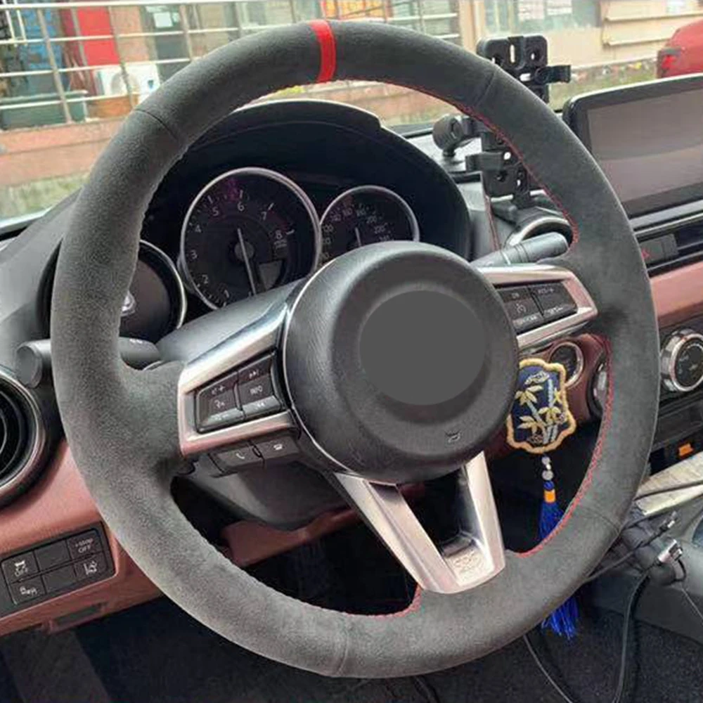 Сделай Сам, сшитая вручную черная натуральная кожа, замша чехол рулевого колеса автомобиля, для Mazda MX5 MX-5, 2016, 2017, 2018, 2019, 2020