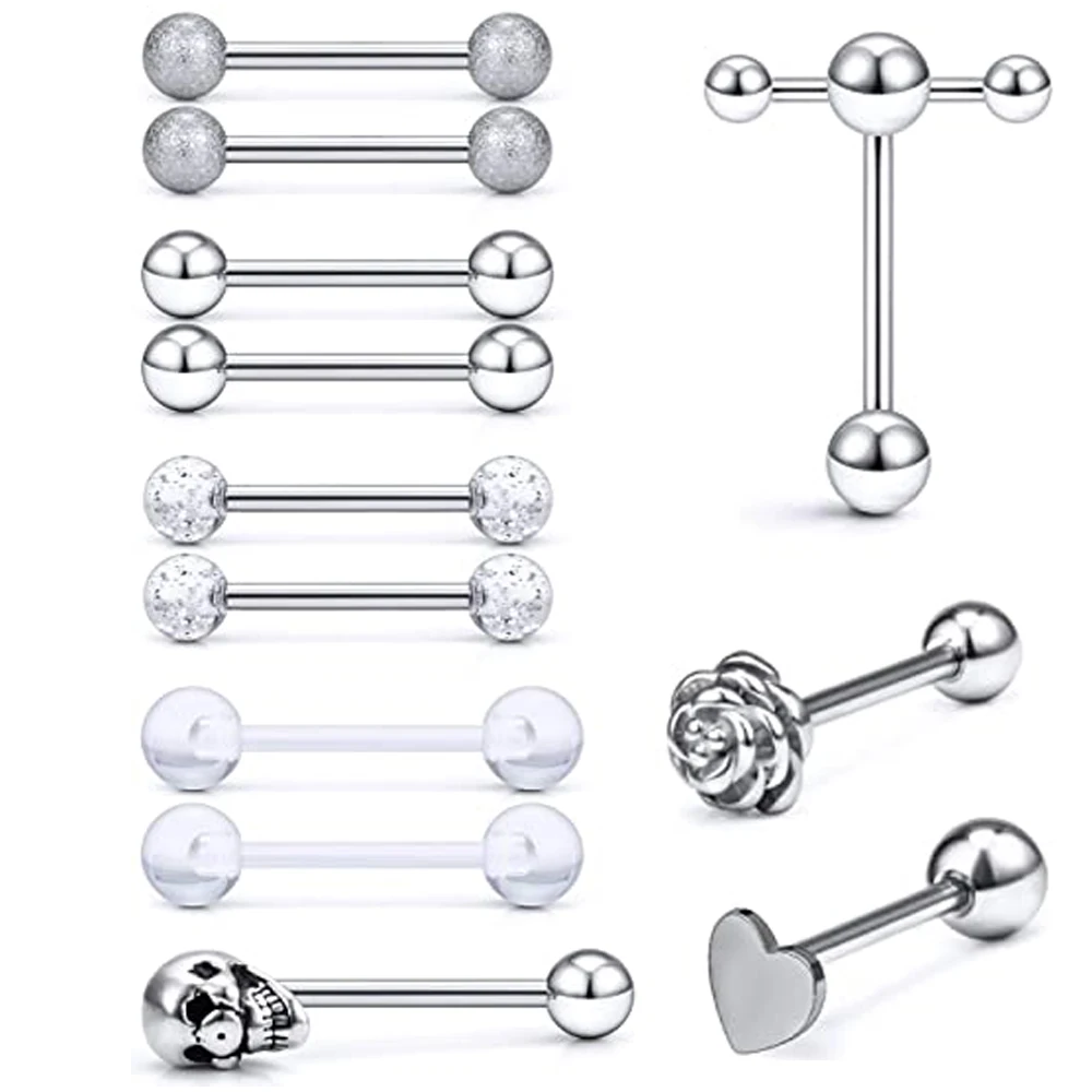 Штанги для пирсинга, многоцветные, хирургические, из нержавеющей стали Длинный ниппель, штанги для пирсинга, украшения для тела для женщин