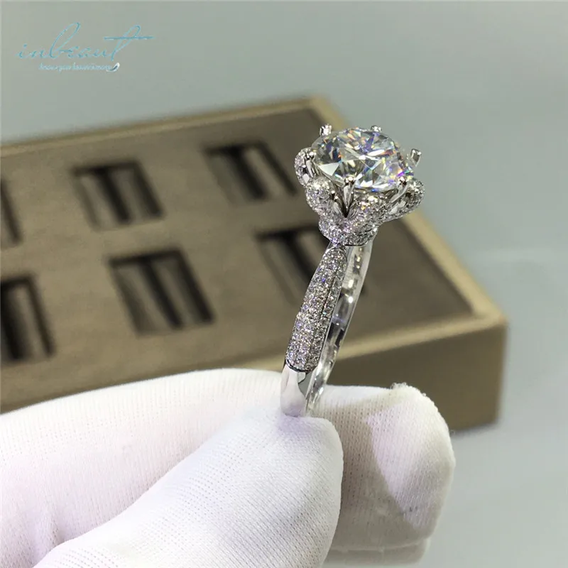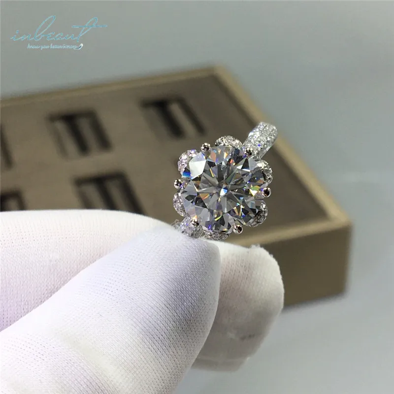 Круглое Сверкающее кольцо inbeaut с муассанитом, кольцо из 925 проб...