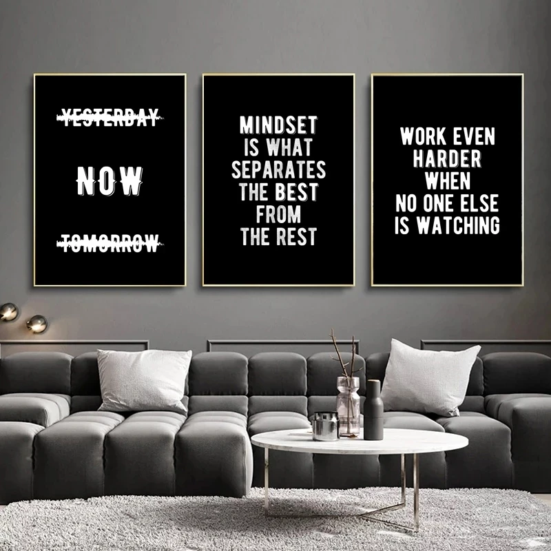 Черно-белые вдохновляющие холсты с надписями, офисные настенные худ...