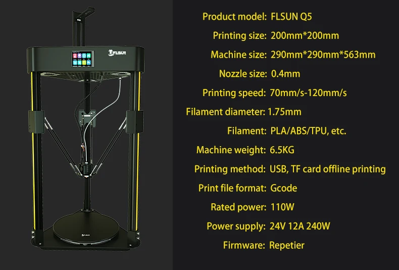 Flsun Q5 3D Printer Delta Kossel Touch Screen DIYmodel TMC2208 Sile...