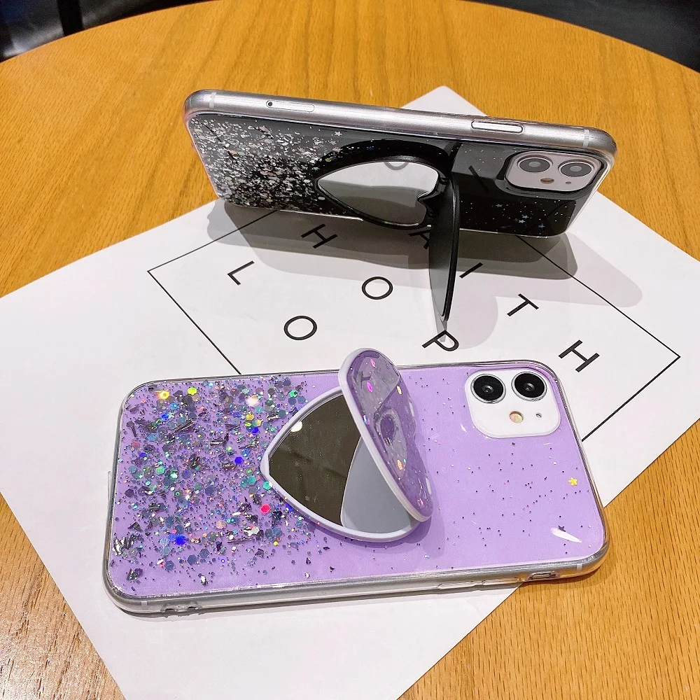 Эпоксидный ЧЕХОЛ ДЛЯ Vivo V21, V21E, V 21 E, прозрачный, с блестящими звездами и зеркальной подставкой
