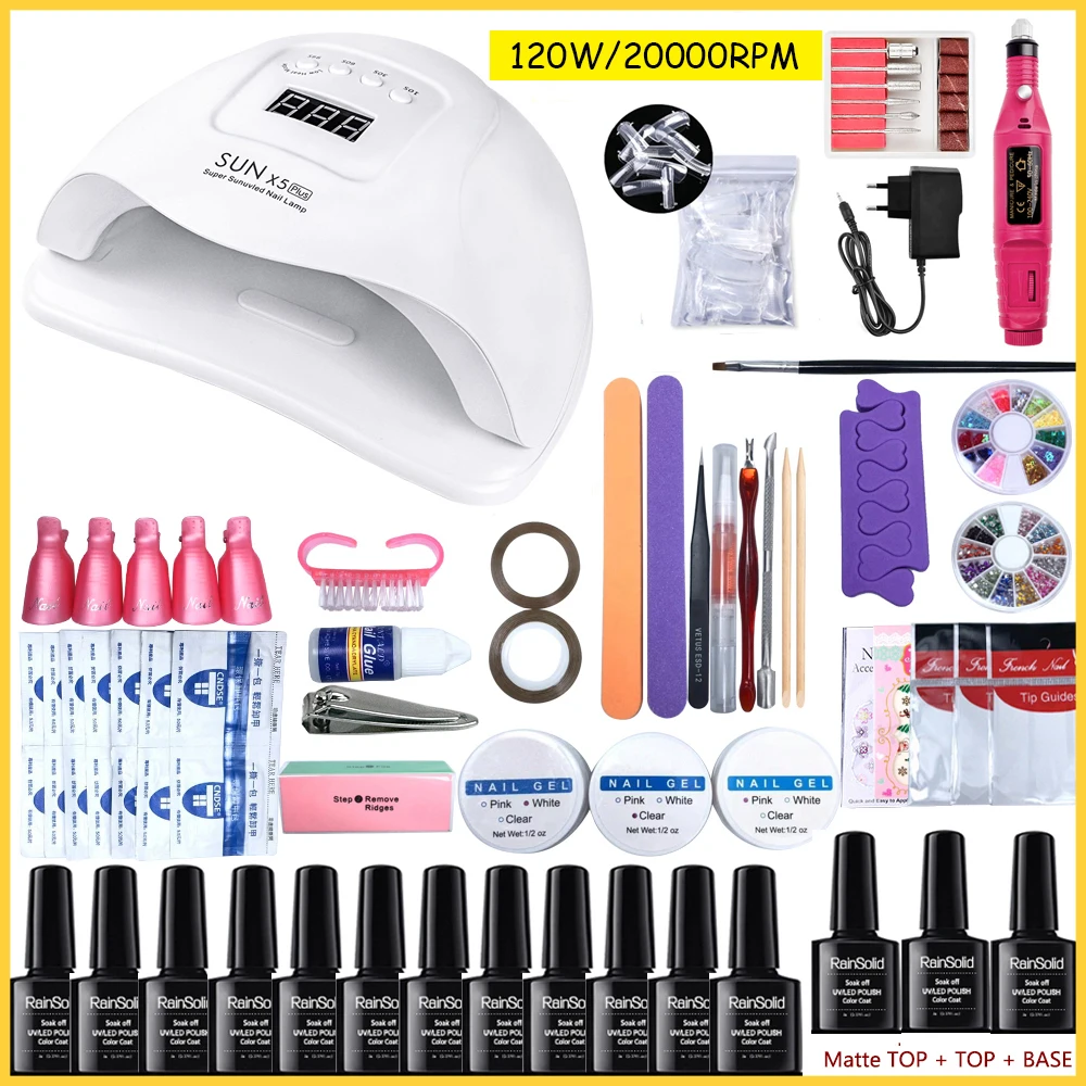 Набор для маникюра с УФ светодиодный лампой 120 Вт и 12 Гель-лаками
