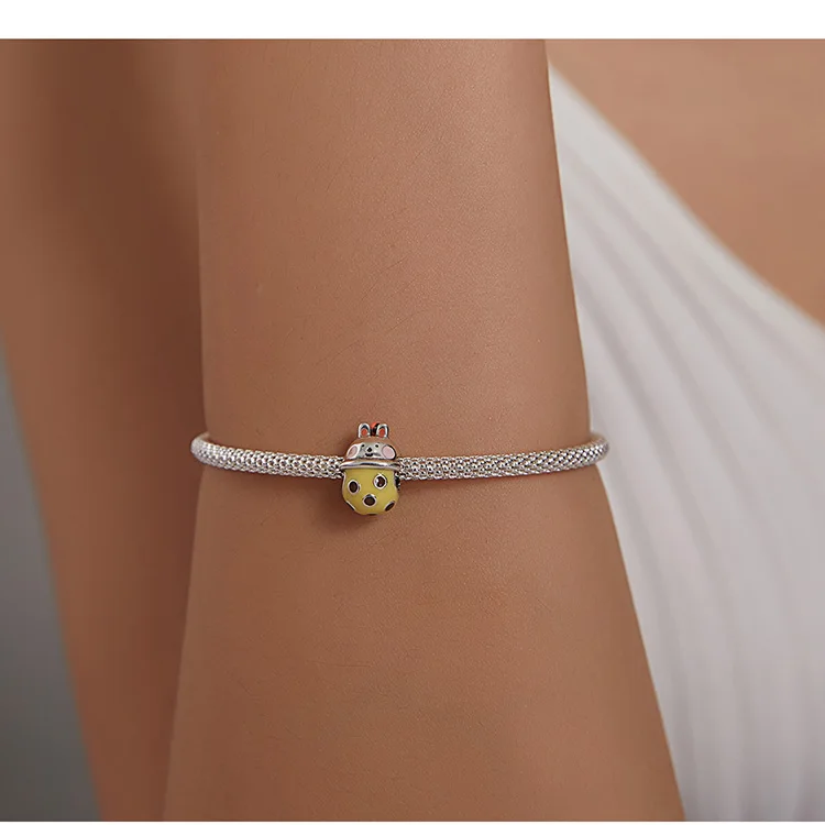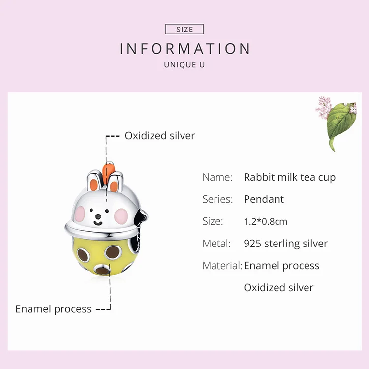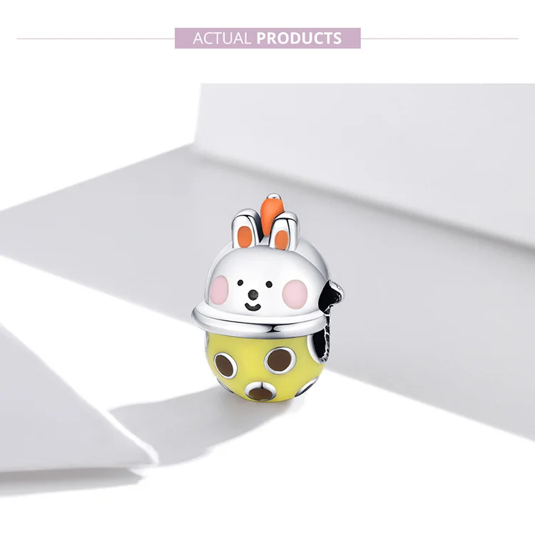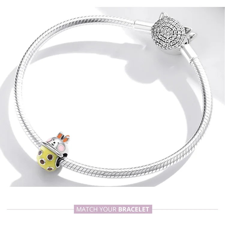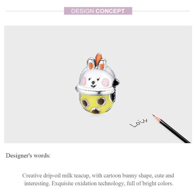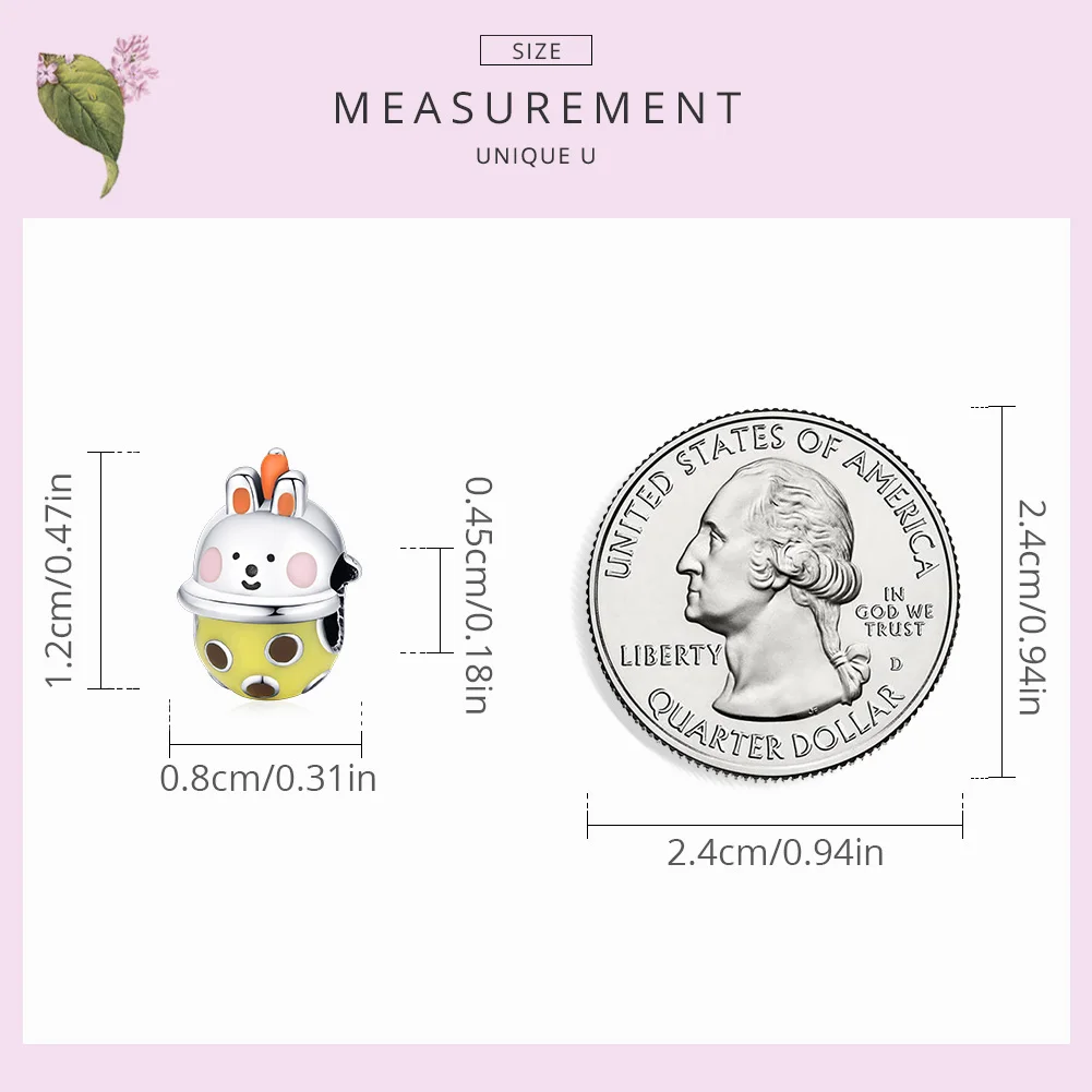 Бусина из эмалированного серебра 925 пробы, с кроликом, чашкой для чая с молоком, для браслета