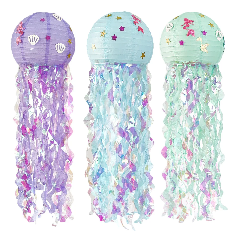Новинка! Бумажный фонарь с Медузой в стиле русалки, подвесное украшение для морской вечеринки на день рождения, детский подарок сделай сам, товары для вечеринки в стиле русалки