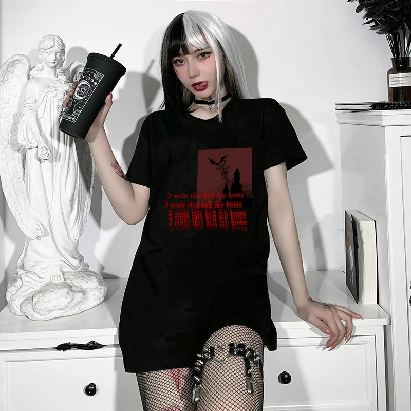 Летняя Готическая уличная одежда в стиле Харадзюку, эмоционально Со...