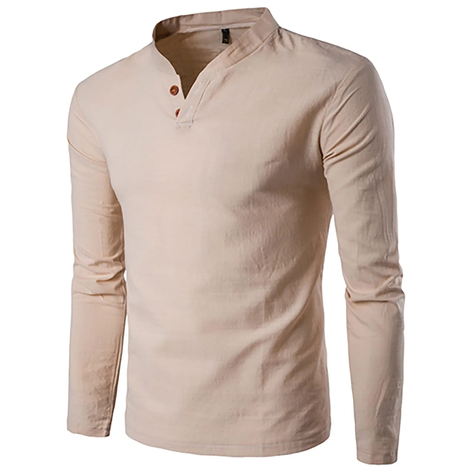 Shirt ClothingMen's Cotton Linen V-neck T-Shirts