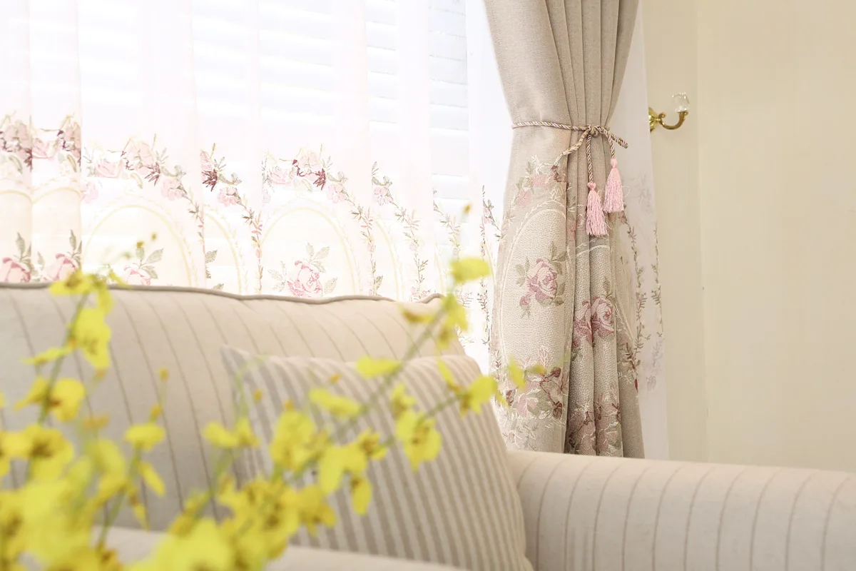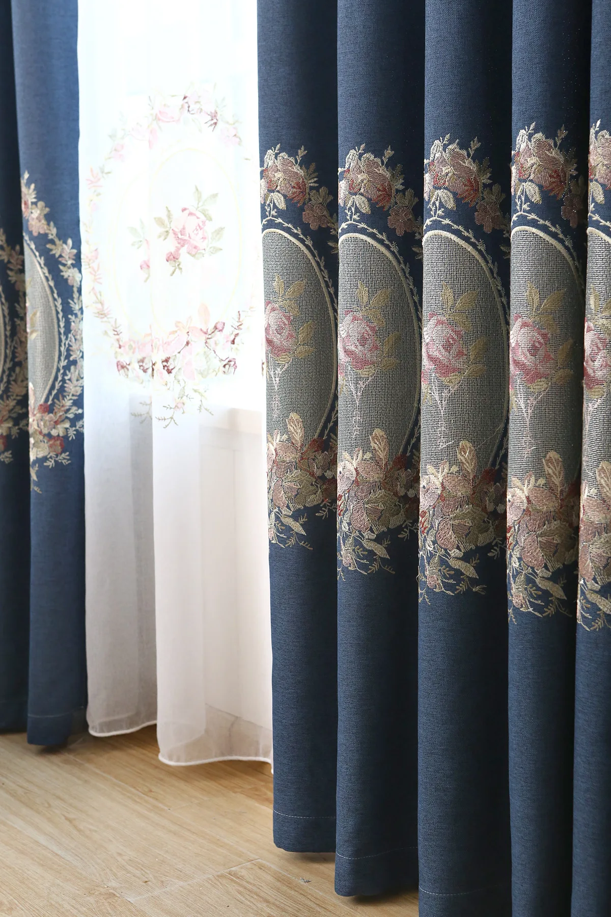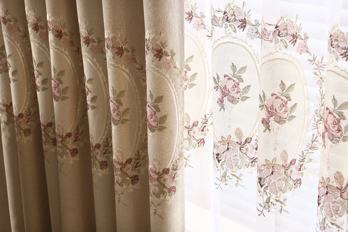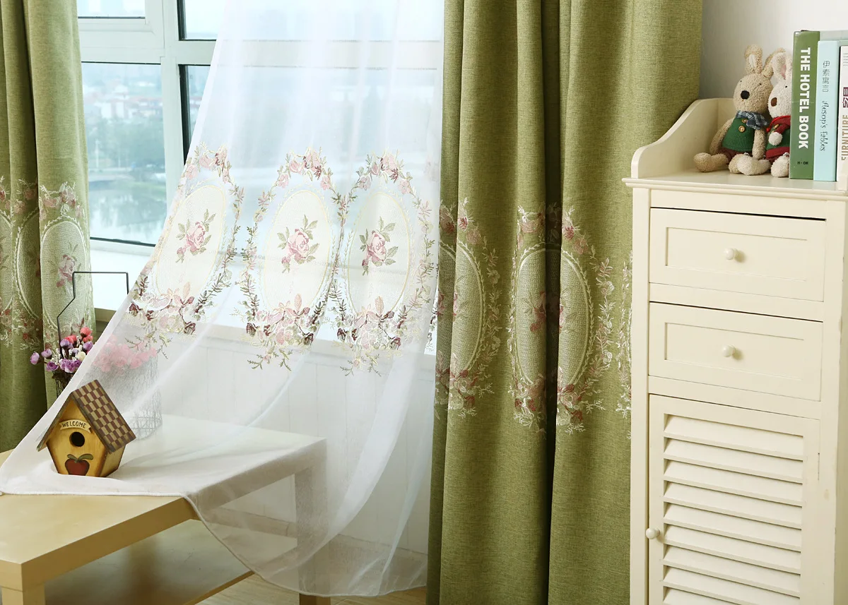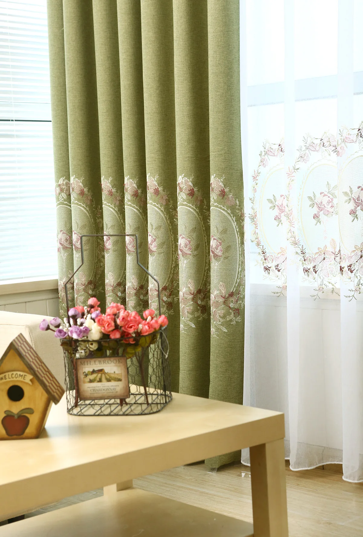 Шторы в европейском стиле с цветочной вышивкой для девушек, гостино...