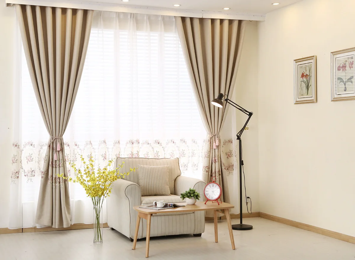 Затемняющие шторы с бежевой вышивкой для гостиной и спальни, соврем...