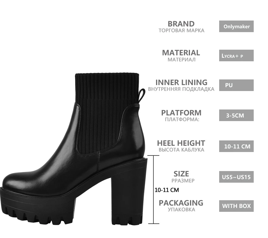 Женские ботильоны без шнуровки Onlymaker 2021, на платформе, на высоком массивном каблуке, матовые черные мягкие носки из искусственной кожи в стиле пэчворк