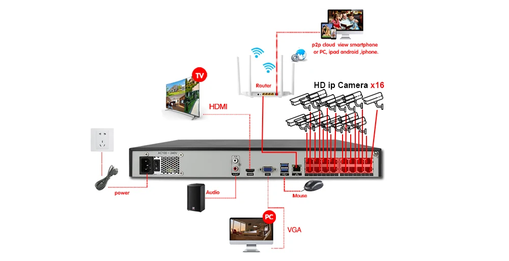 Простая настройка, всего 4 шага для просмотра мобильный телефон, просмотра видео в режиме реального времени из любого места и в любое время с помощью смартфона, стола или ПК с передовой технологией P2P, вы можете получить удаленный доступ к вашей системе за считанные минуты или меньше, нет необходимости в переадресации, удаленный доступ никогда не был таким простым!