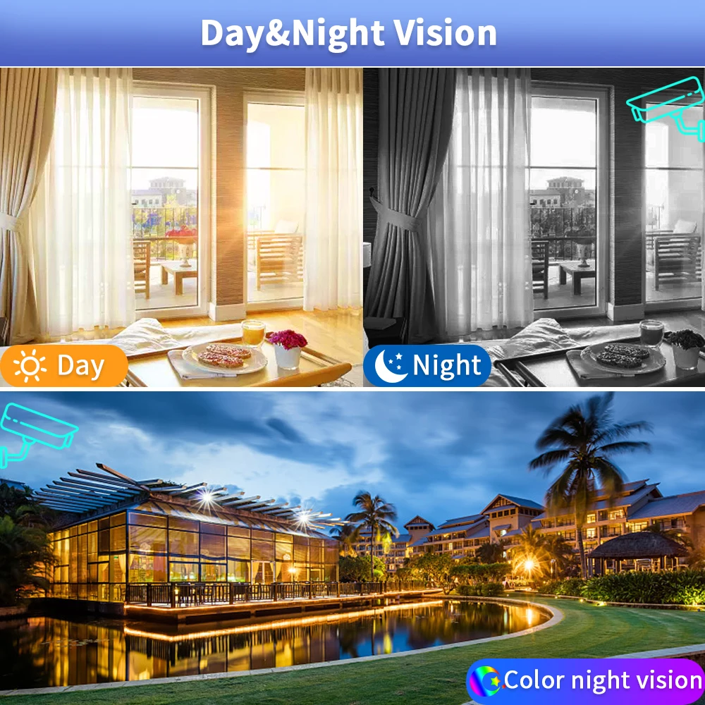 Умный фильтр, отсекающий ИК-спектр автоматически переключается между днем и ночью, цвет toreduce в дневное время и повышает яркость изображенияВ ночное время вы можете получить яркие кадры наблюдения от рассвета до темноты.