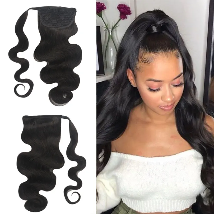 Человеческие волосы, хвост, охватывающие заколки, бразильские волосы Remy, удлинители конского хвоста для афроамериканцев