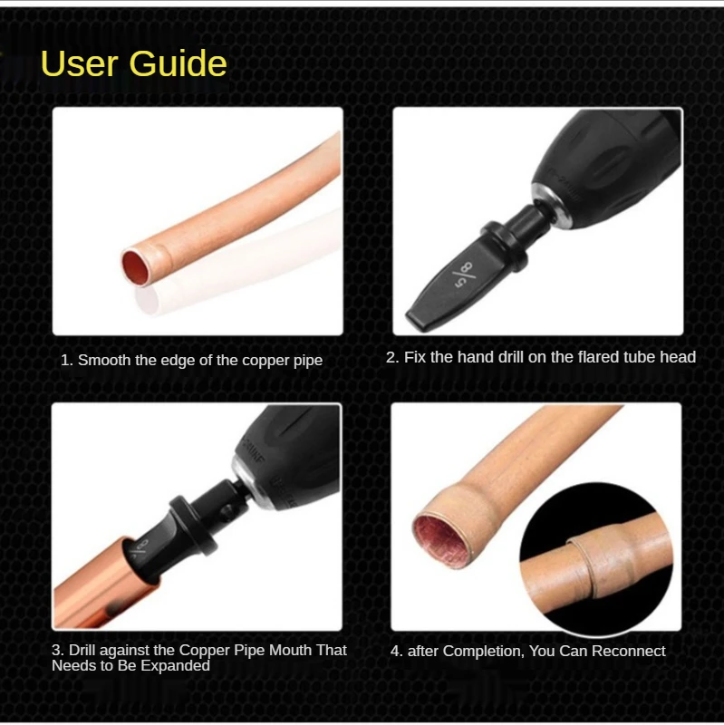 Расширьте медную трубу, чтобы сделать две медные трубы взаимосвязанными, когда установлен кондиционер.