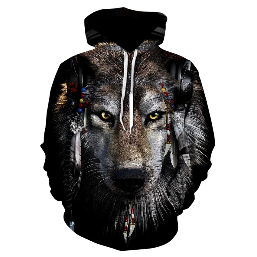 Толстовка МужскаяЖенская, с 3D-принтом волка, в стиле Харадзюку