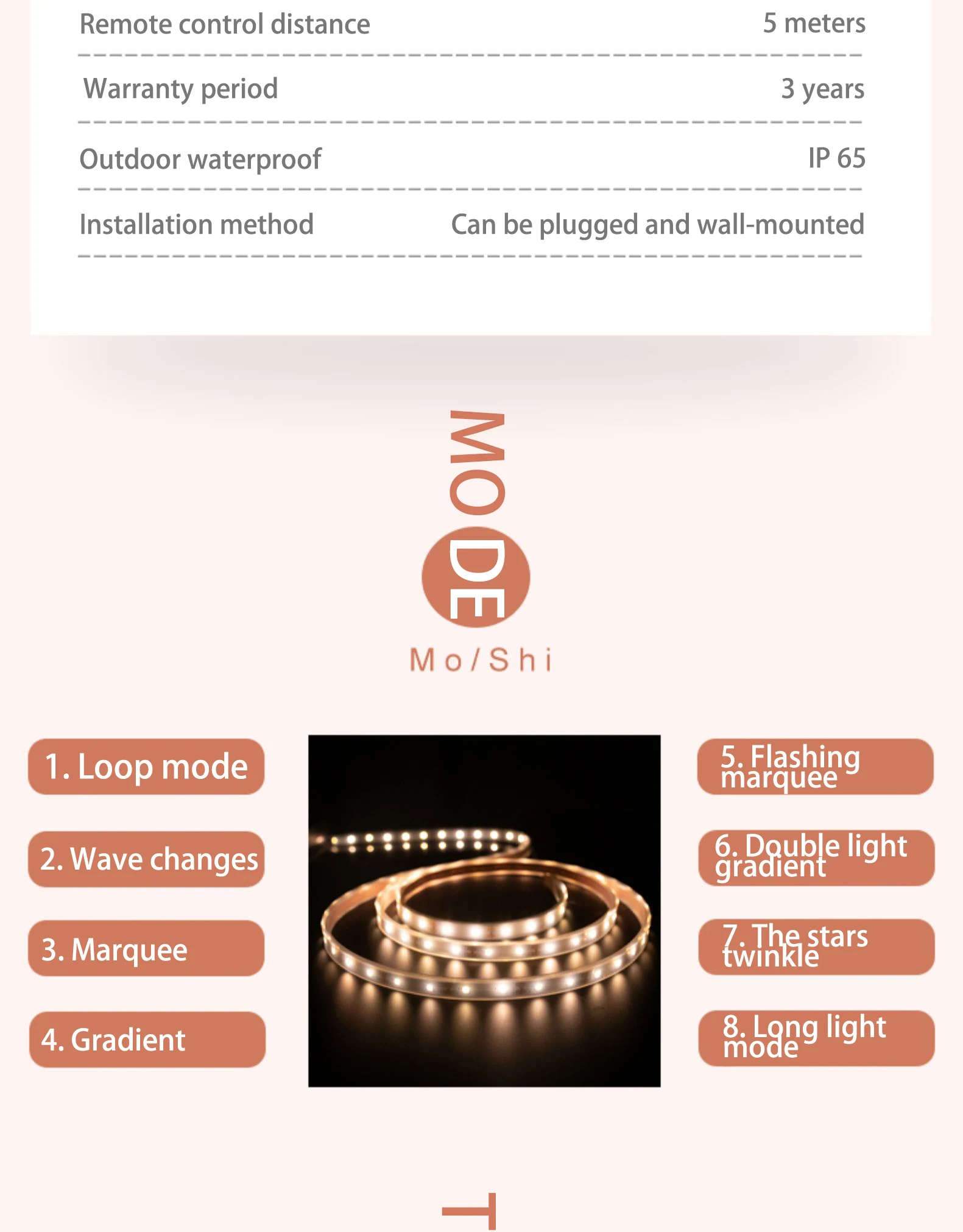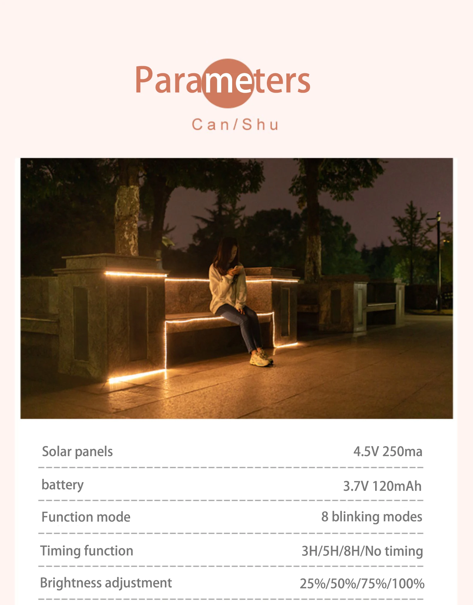 1. Они дают яркое теплое свечение, позволяя вашей семье видеть, куда они едут, но не такое яркое, что это убивает настроение или мешает соседям. Он водонепроницаемый, поэтому дождь и брызги не влияют на него! 2. Имеет несколько настроек, вы можете иметь их сверкающими или статическими или выключенными; С функцией памяти, вы не должны постоянно повторять настройки каждую ночь; Автоматическое включение в сумерках/выключение на рассвете, они просто для вас, чтобы наслаждаться. 3. Наши солнечные огни имеют большую солнечную панель, встроенный аккумулятор емкостью 1800 мА · ч, получите полную зарядку около 6 часов под сильным солнечным светом и Обеспечьте 8-20 часов использования после каждого полностью заряженного. Идеально подходит для тротуара, крыши, патио, заднего двора, беседки, забора, лестниц, дорожек, бассейна, маленькой библиотеки, двери, задней панели, окна спальни, шкафов, внутреннего украшения на открытом воздухе или освещения.