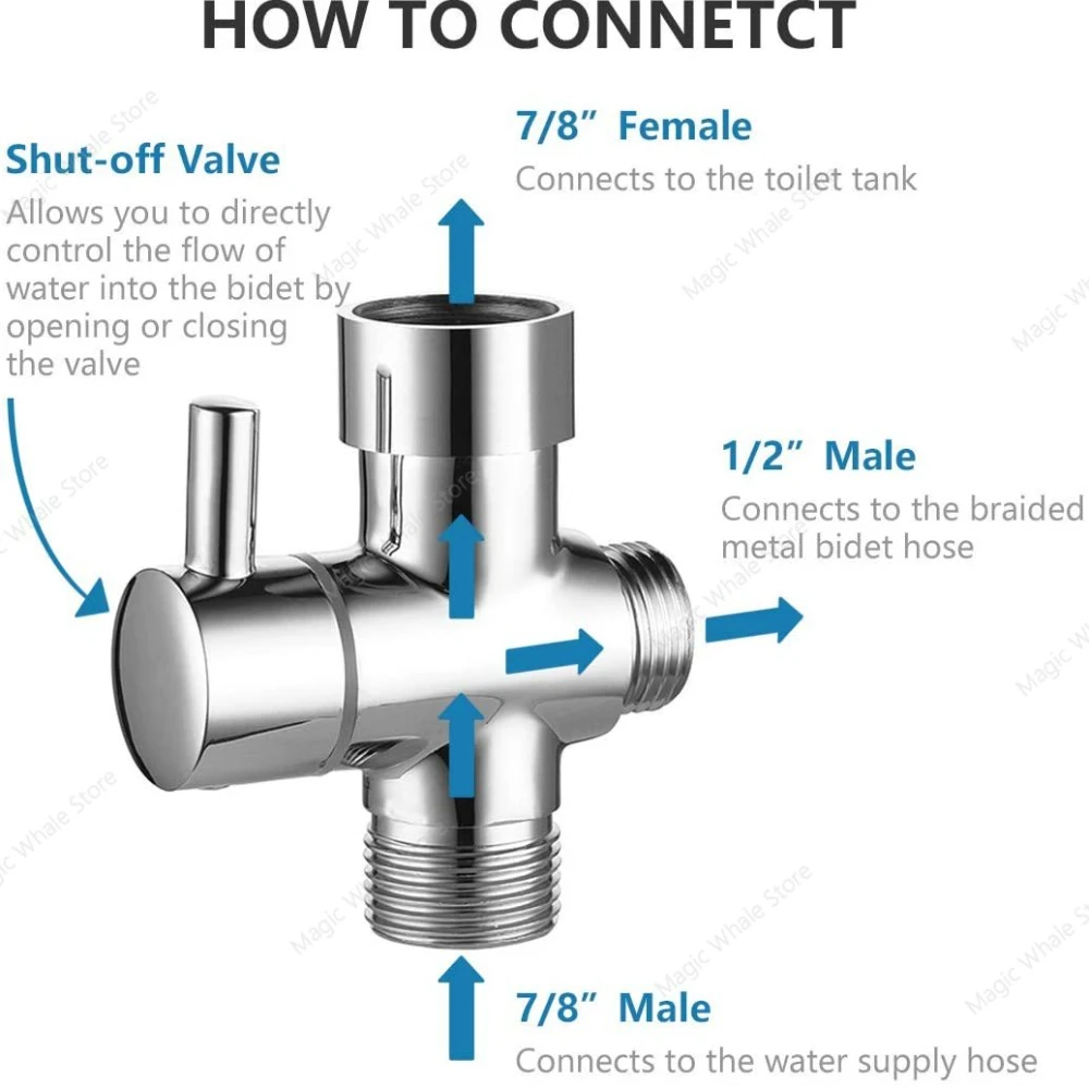 Материал корпуса: латунь Материал ручки: латунь Отделка: хром Как установить? Шаг 1: Выключите клапан подачи воды, затем промойте туалет и удерживайте ручку, чтобы полностью очистить резервуар. Шаг 2: Убедитесь, что внутри водяного входа Т-образного клапана имеется резиновая шайба. Шаг 3: Подключите туалет, Т-клапан и два шланга. Шаг 4: Включите клапан подачи воды и наблюдайте за шлангом, если есть какое-либо соединение, свободное или протекающее, вам нужно добавить водонепроницаемую ленту. Если без протечек, ваша установка окончена. Теплые наконечники 1. Пожалуйста, убедитесь, что диаметр впускного отверстия вашего унитаза составляет 7/8 "или 3/4" или 1/2 "для установки этого набора. 2. Вы можете использовать T-valve отрегулировать подачу воды до низкого уровня, чтобы давление воды на шланг и распылитель не было слишком высоким. 3. Будьте осторожны, чтобы не затянуть соединение. Что входит в посылка? Т-образный Клапан x 1