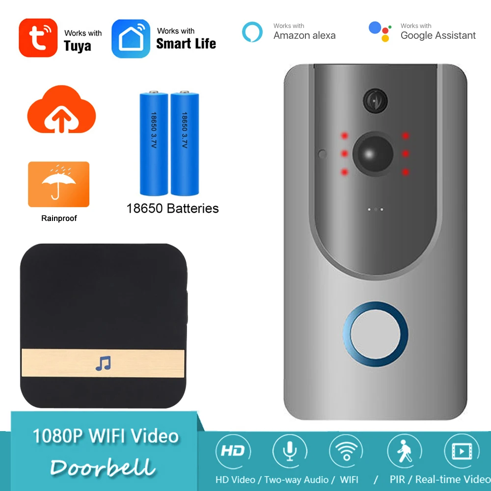 Беспроводной домашний видеодомофон Tuya Smartlife 1080P, камера безопасности с защитой от дождя, электронный дверной звонок с пассивным ИК датчиком движения, Alexa Google