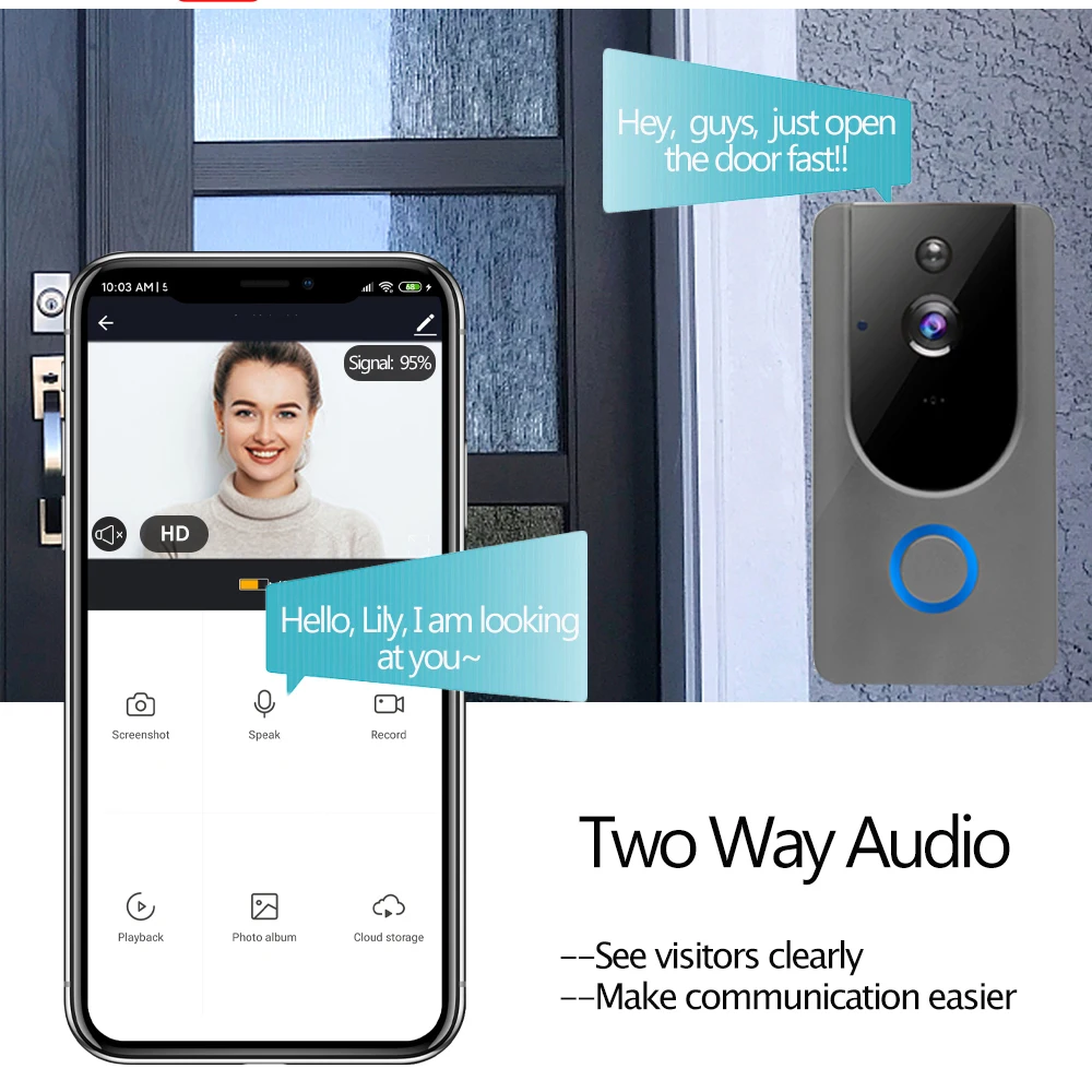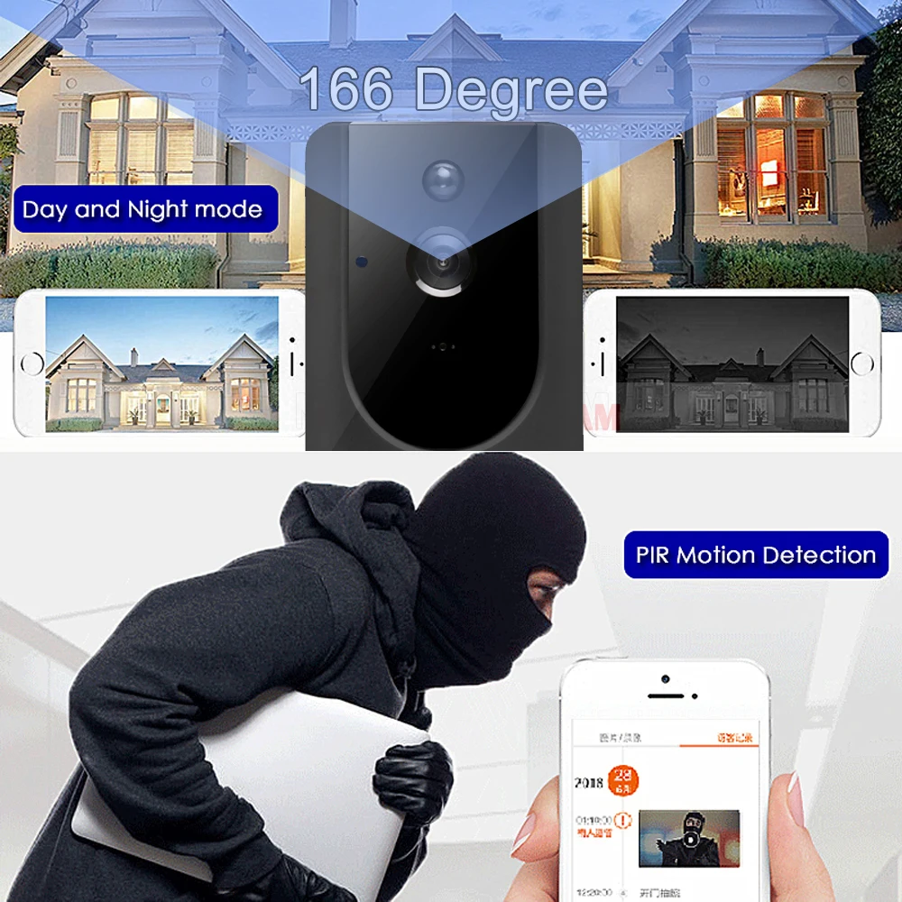 С разрешением 1080P, вы можете получить более четкое изображение и видео через этот видео дверной звонок, получить более подробную информацию для защиты безопасности