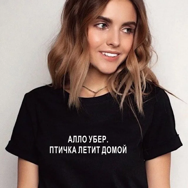 Футболка женская с надписью в русском стиле, рубашка с коротким рукавом, повседневный летний топ, черный белый цвет