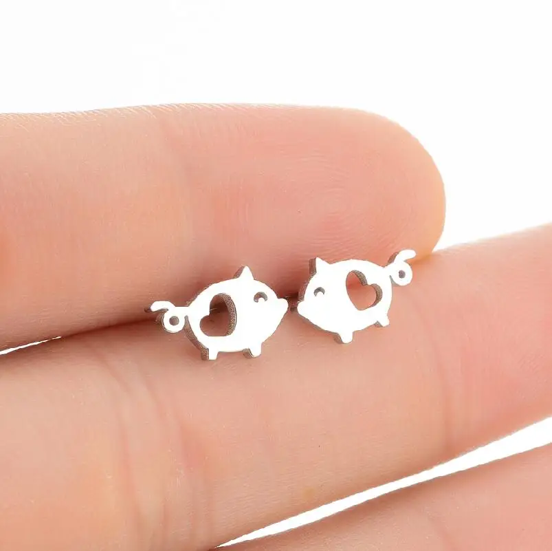 Корейские серьги из нержавеющей стали для женщин и детей, Мультяшные серьги-гвоздики с ежиком, собакой, свинькой, акулой, обезьяной, маленькие гвоздики в виде животных, лучший подарок для друга