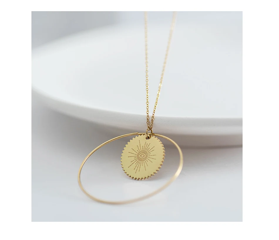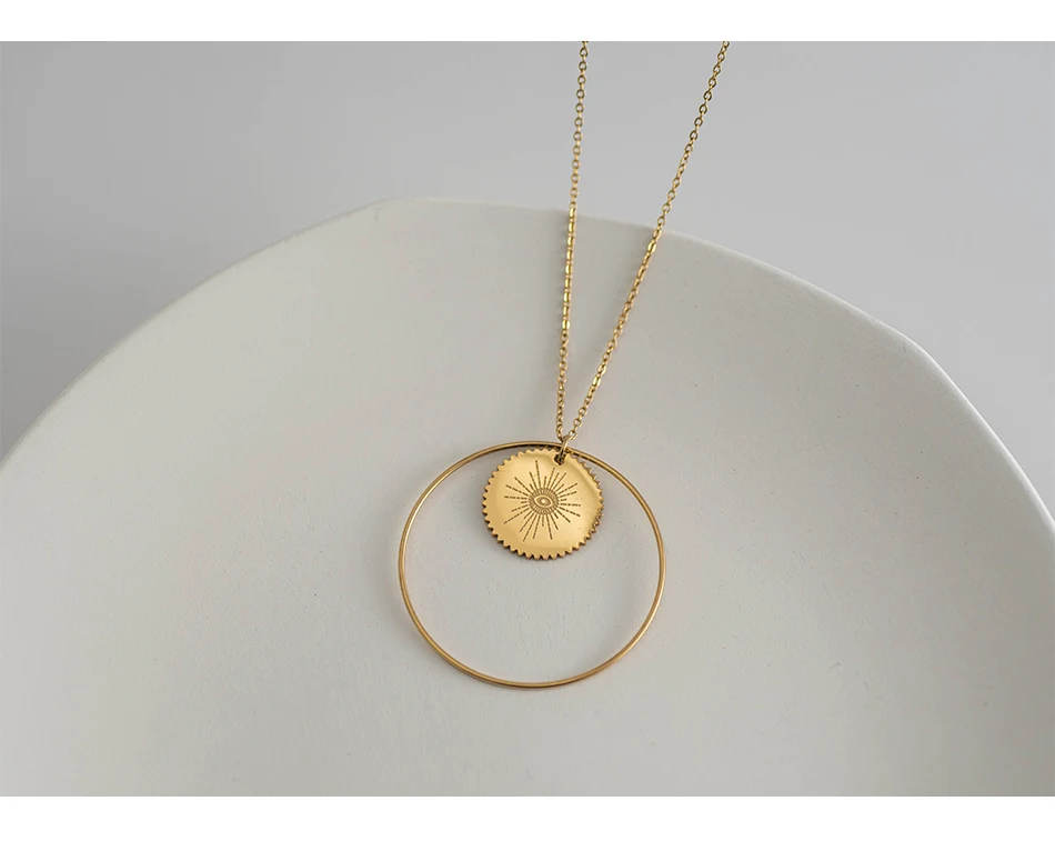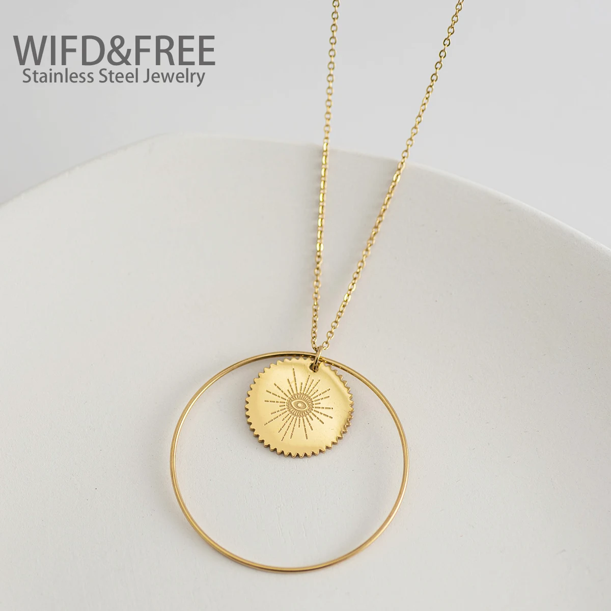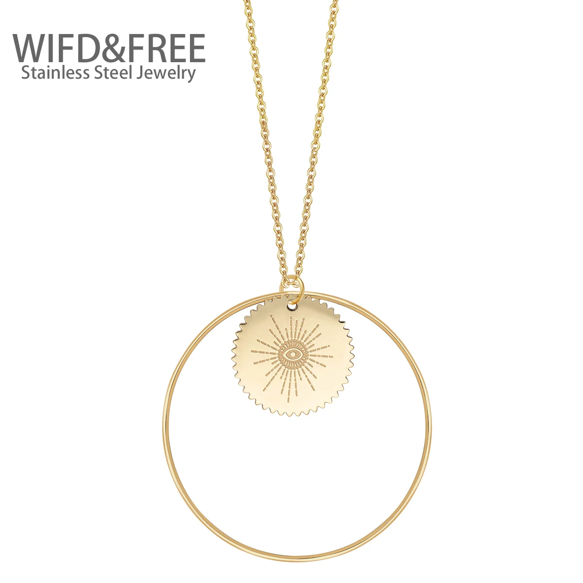 Универсальное модное ожерелье из нержавеющей стали, подвеска с золотыми глазами, ожерелье унисекс с большим кольцом, ювелирные изделия для вечеринки, подарок для друзей